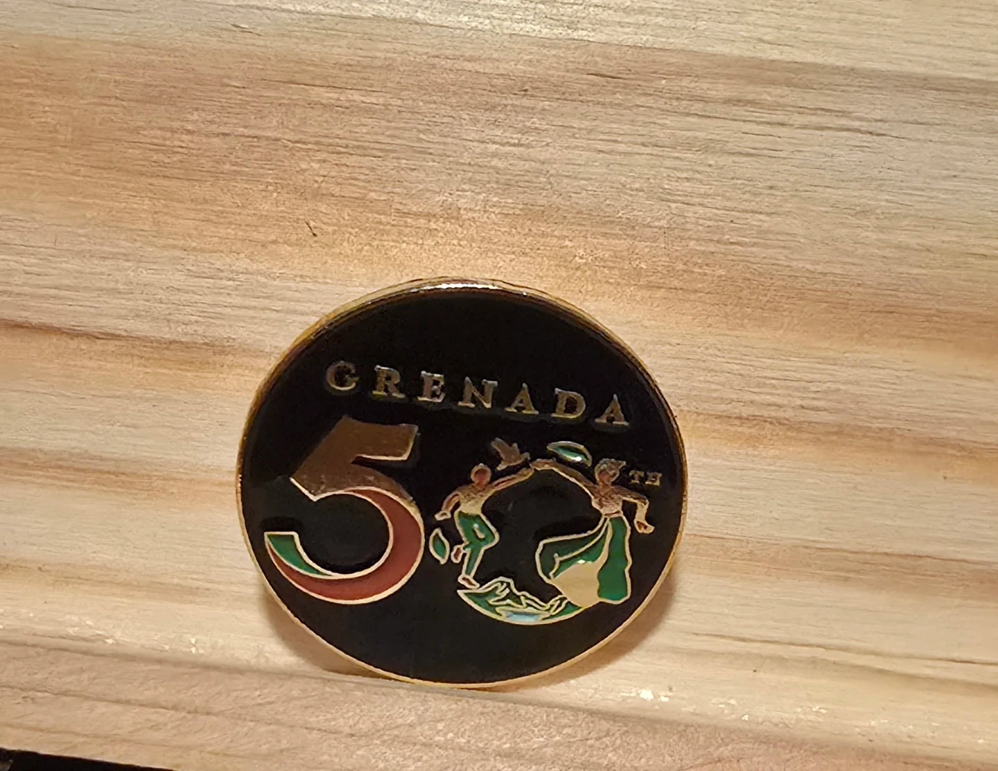 🥕This pin commemorates Grenada's 50th anniversary. It features colorful enamel artwork and a secure clasp on the back. Great for collectors! Bought in Grenada.