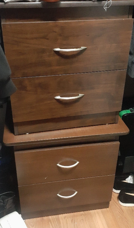 7 piece box bed // storage bedroom set is for sale including dresser, mirror, 2 night tables, box beds (2 pieces = queen size), and headboard