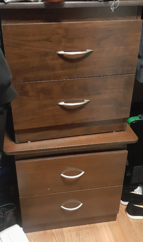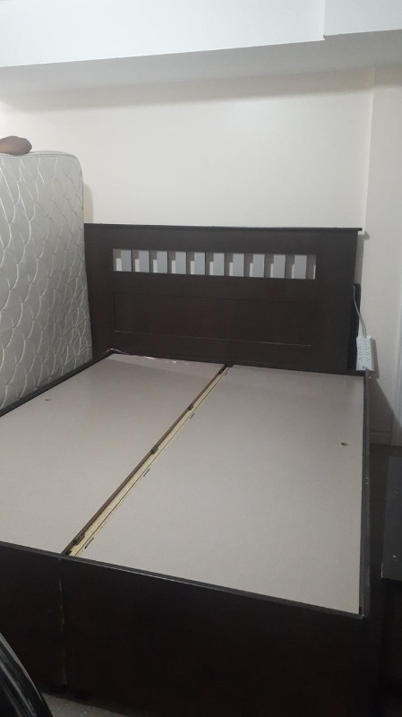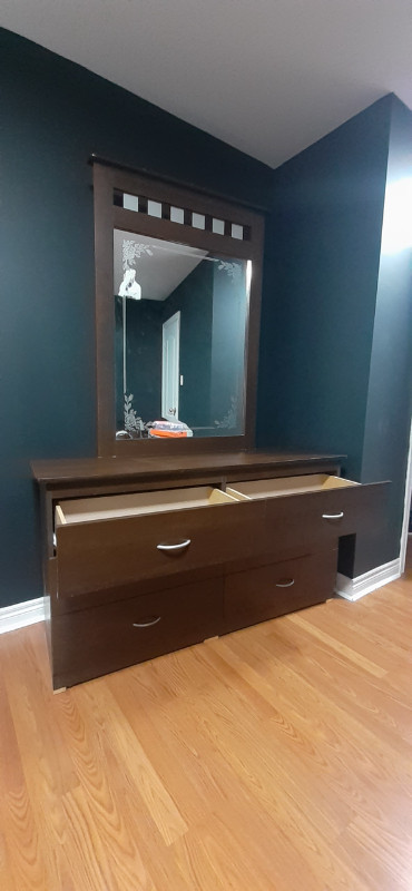 7 piece box bed // storage bedroom set is for sale including dresser, mirror, 2 night tables, box beds (2 pieces = queen size), and headboard