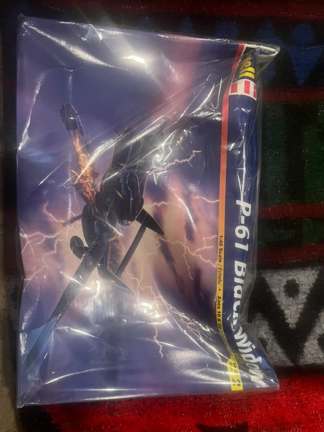 This is a Revell P-61 Black Widow model kit in 1:48 scale. It's recommended for ages 12 and up. The kit includes detailed parts for assembly. Paint and glue not included.