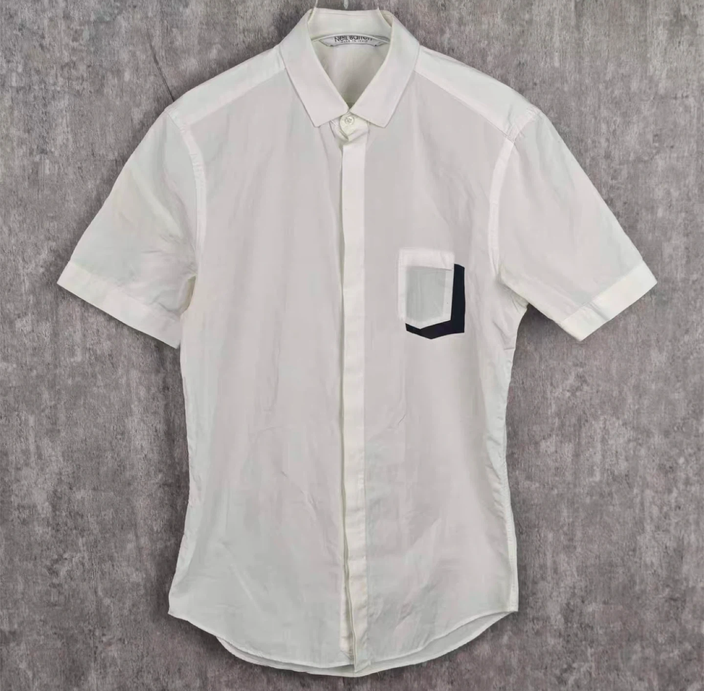 A crisp white short sleeve button-up shirt from Neil Barrett. Made in Italy with a single chest pocket detail. It's a stylish piece for any occasion.