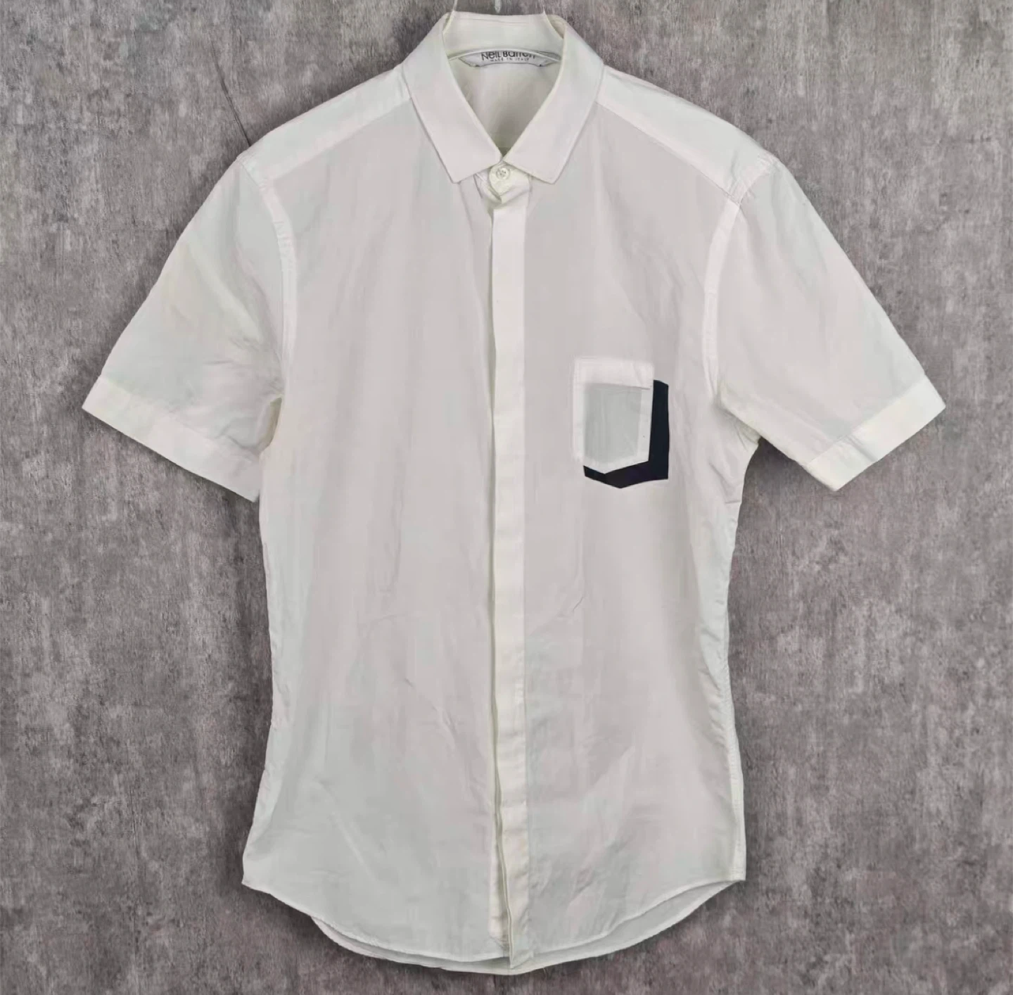 A crisp white short sleeve button-up shirt from Neil Barrett. Made in Italy with a single chest pocket detail. It's a stylish piece for any occasion.