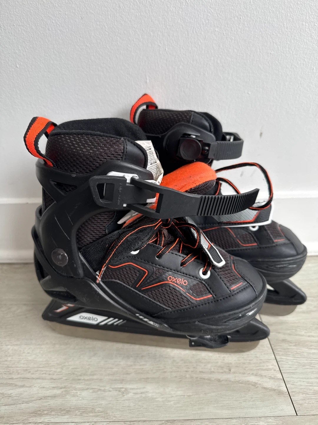 These Oxelo inline skates are designed for junior skaters. They're adjustable from a EU size 30 to 33, fitting US youth sizes 13C/2.5. The skates have a secure lacing system with Velcro straps for a snug fit. They're suitable for beginners and recreational skating.