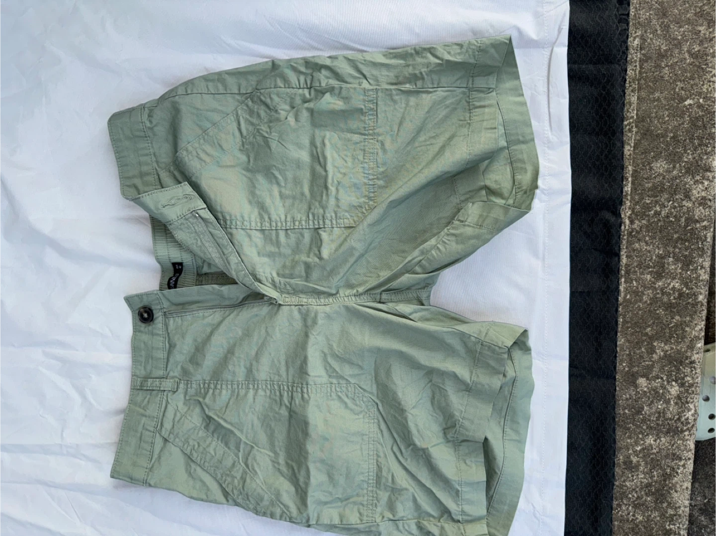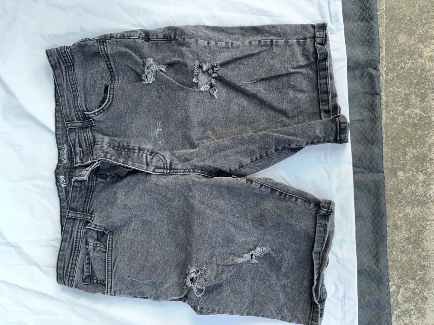 Selling a variety of men's shorts in different styles and sizes. There's a pink pair of swim shorts, a blue ombre pair of swim shorts, a distressed gray denim pair of shorts, a blue pair of casual shorts, and a green pair of casual shorts. All in good condition!