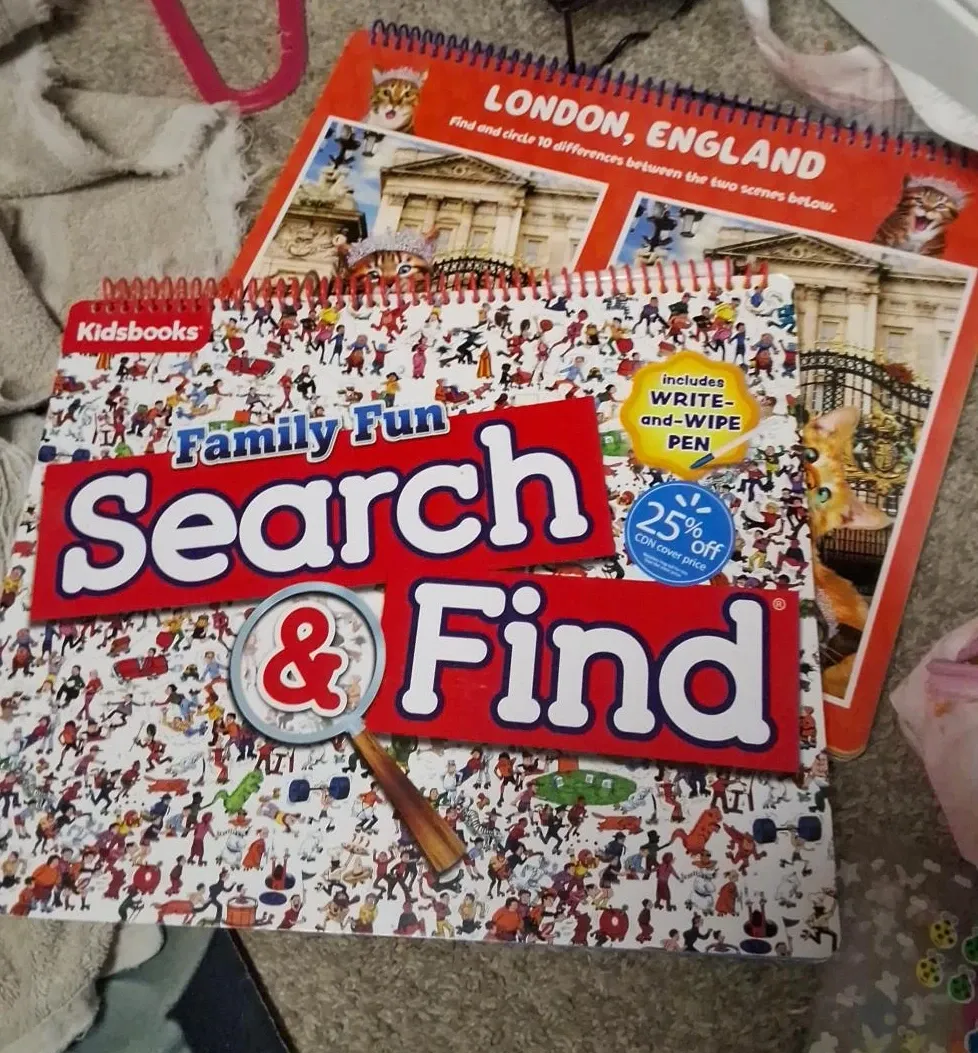 This Kidsbooks Family Fun Search & Find activity book comes with a write-and-wipe pen. It includes a London, England themed seek and find puzzle. Fun for kids who enjoy spotting differences!