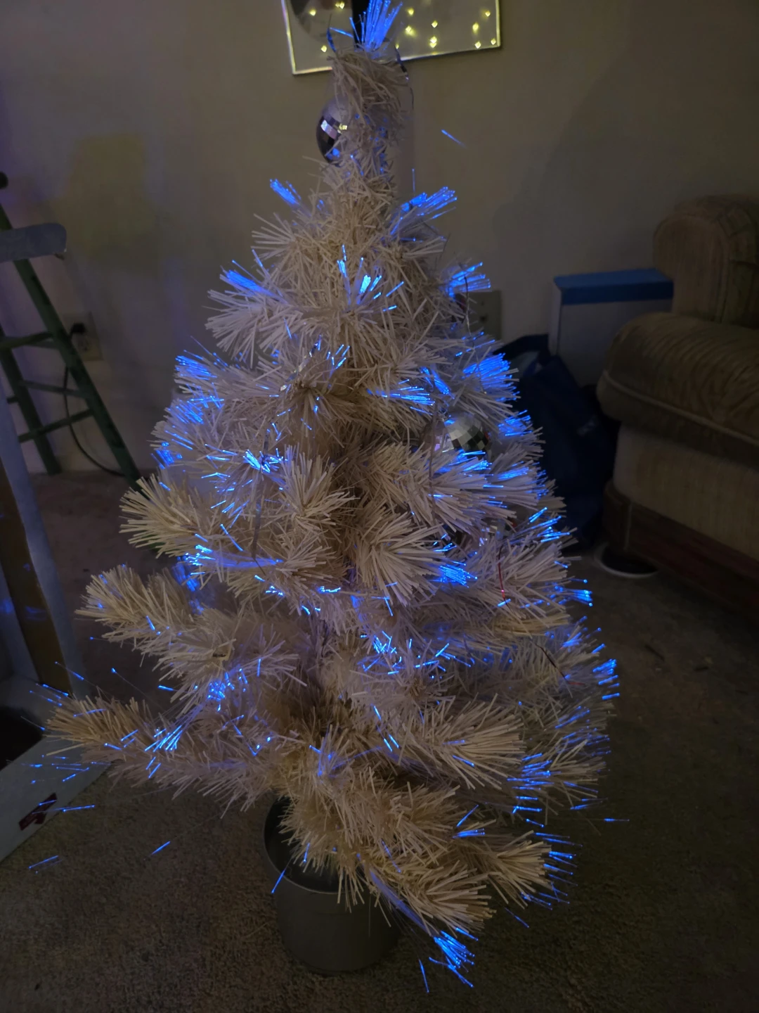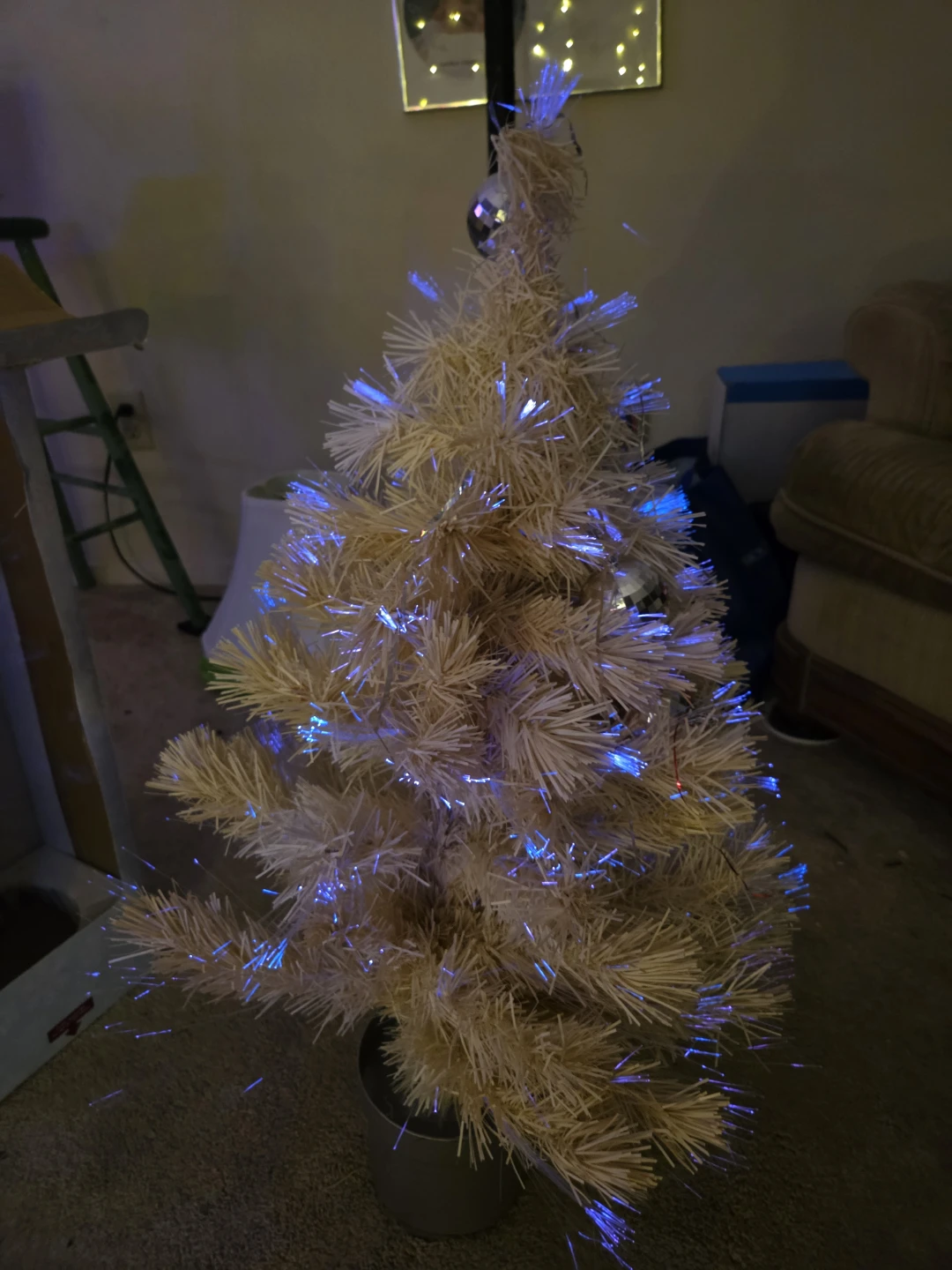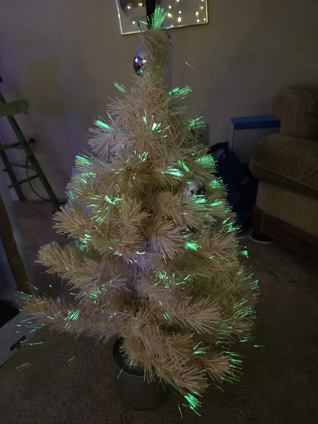 Here's a small fibre optic white Christmas tree! The lights change colours to add a festive touch to any room during the holidays