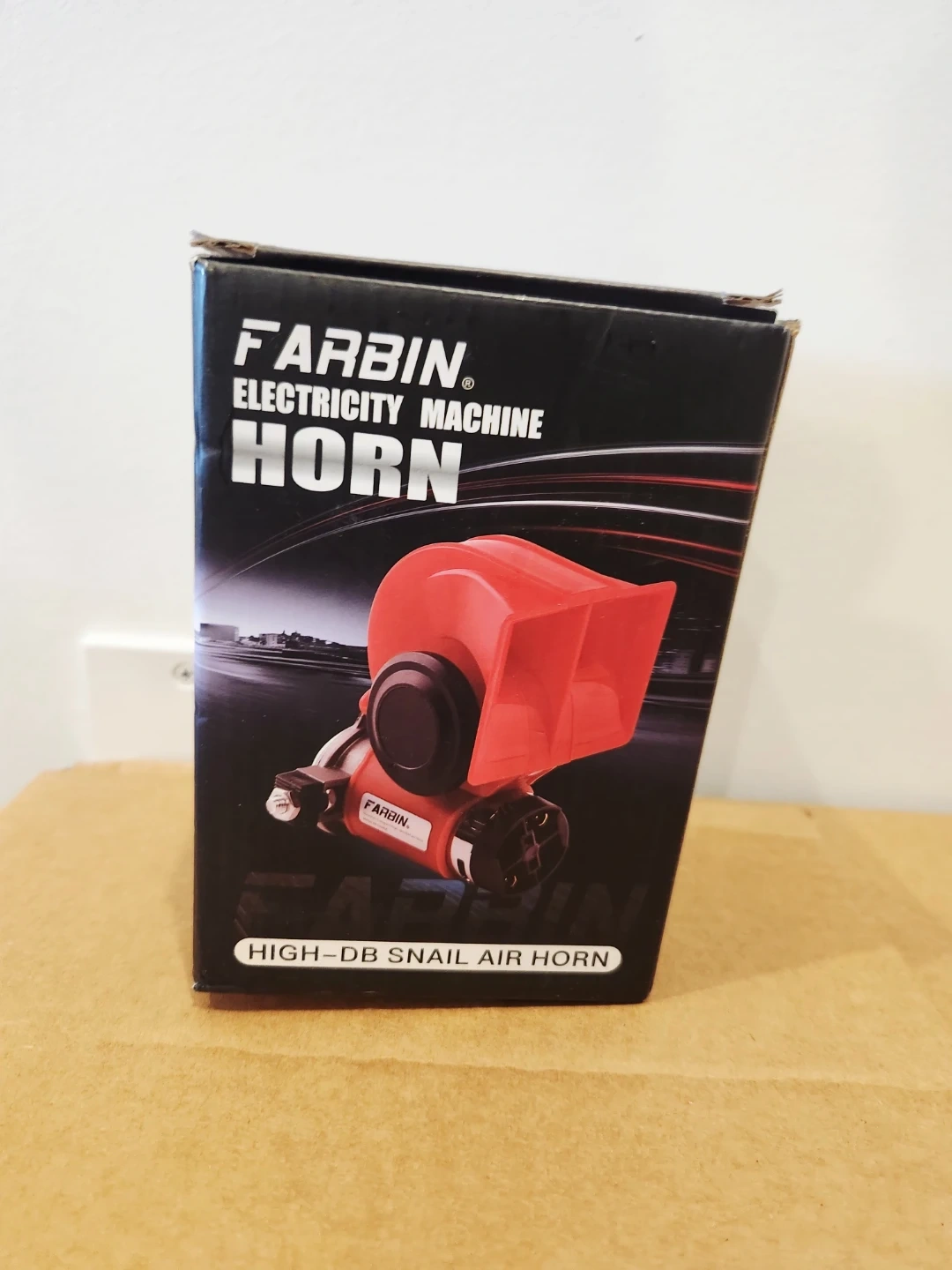 This FARBIN Snail Air Horn is an electric air horn. It has a sound level of ≥125dB. Available in 12V and 24V models with current ratings of 18A and 9A respectively.