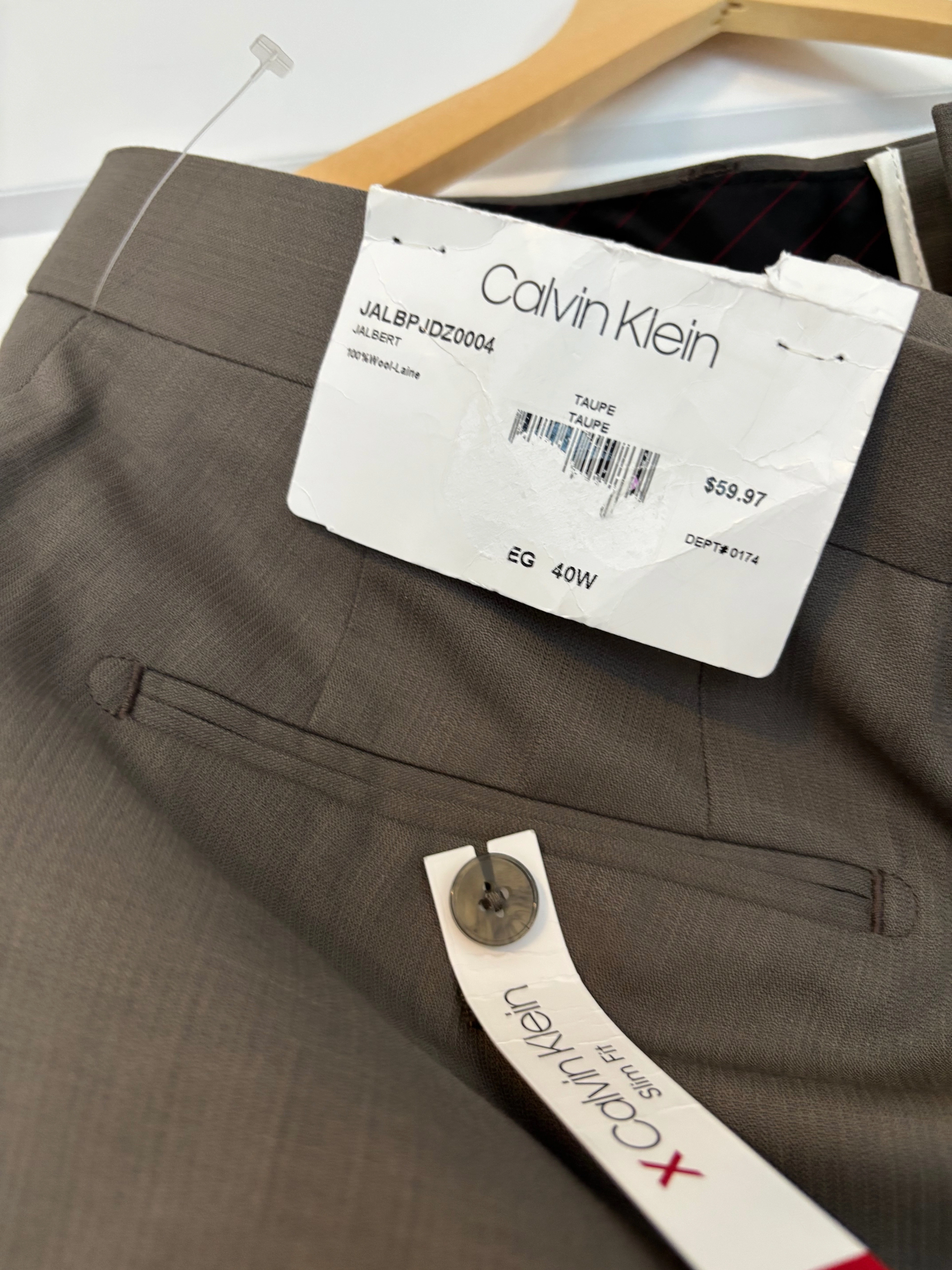 NWT Calvin Klein Men’s Slim Fit Pants – Size 40W, in perfect condition.