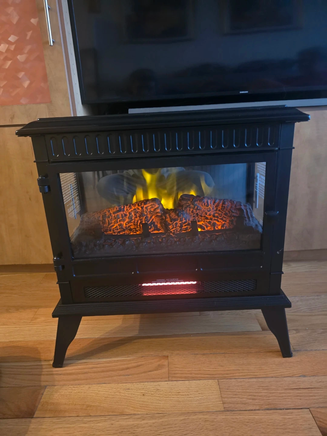 Black Electric Fireplace with Flame Effect