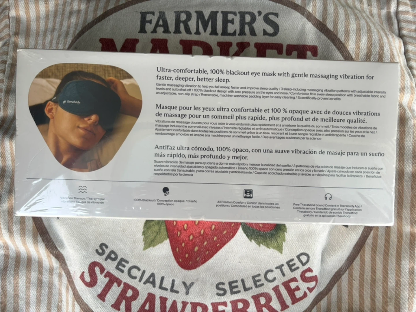This ultra-comfortable 100% blackout sleep mask features gentle massaging vibration.