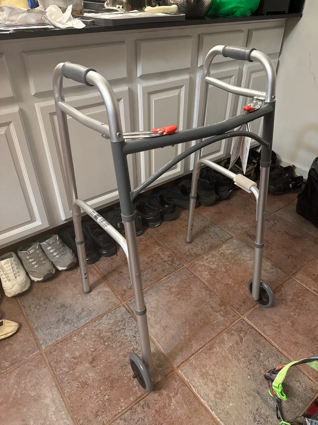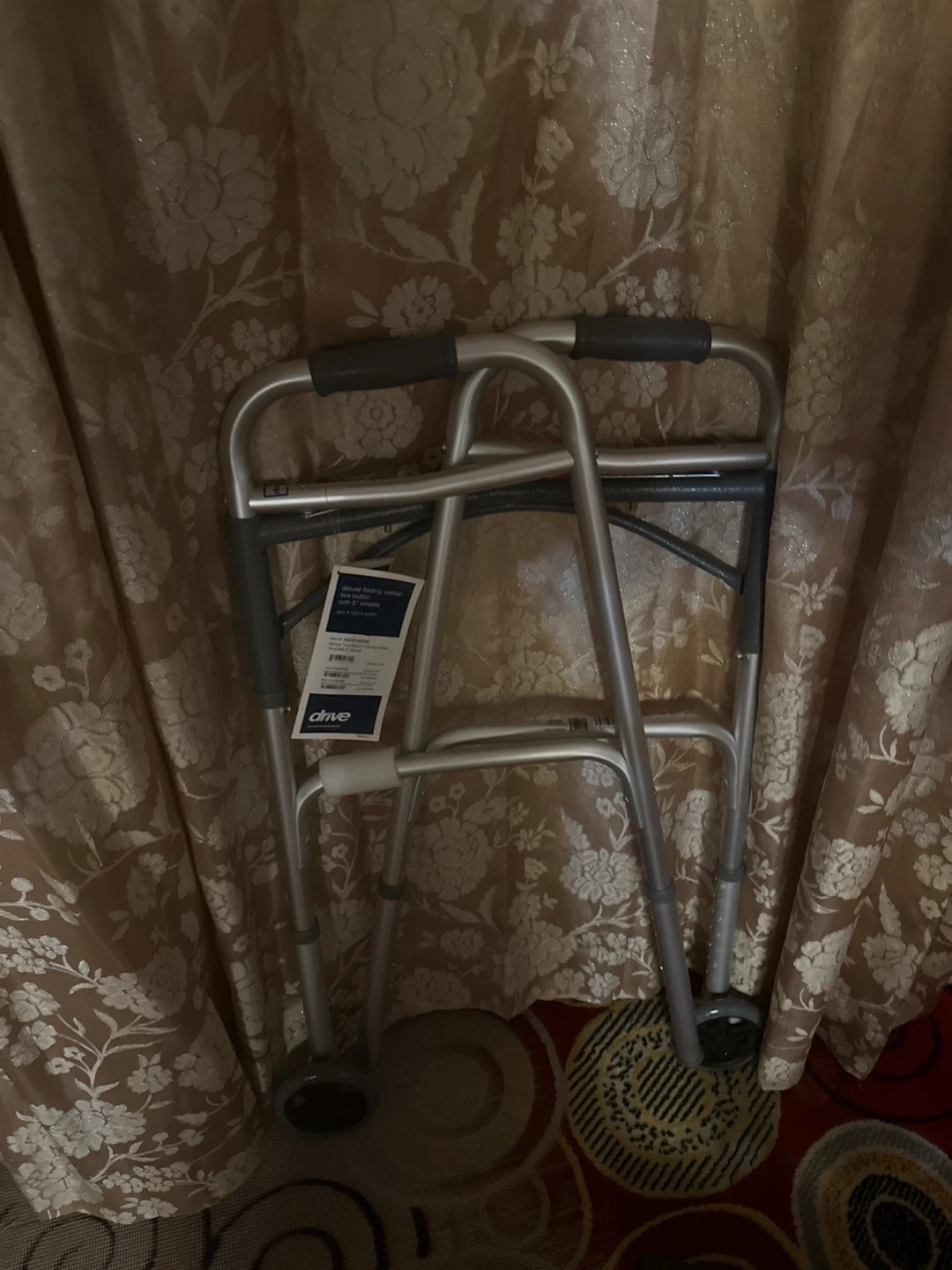 This folding walker from Drive Medical is designed for stability and ease of use. It features comfortable hand grips and 5-inch wheels for smooth mobility. The walker folds easily for convenient storage and transport. It's a helpful tool for anyone needing extra support while walking.