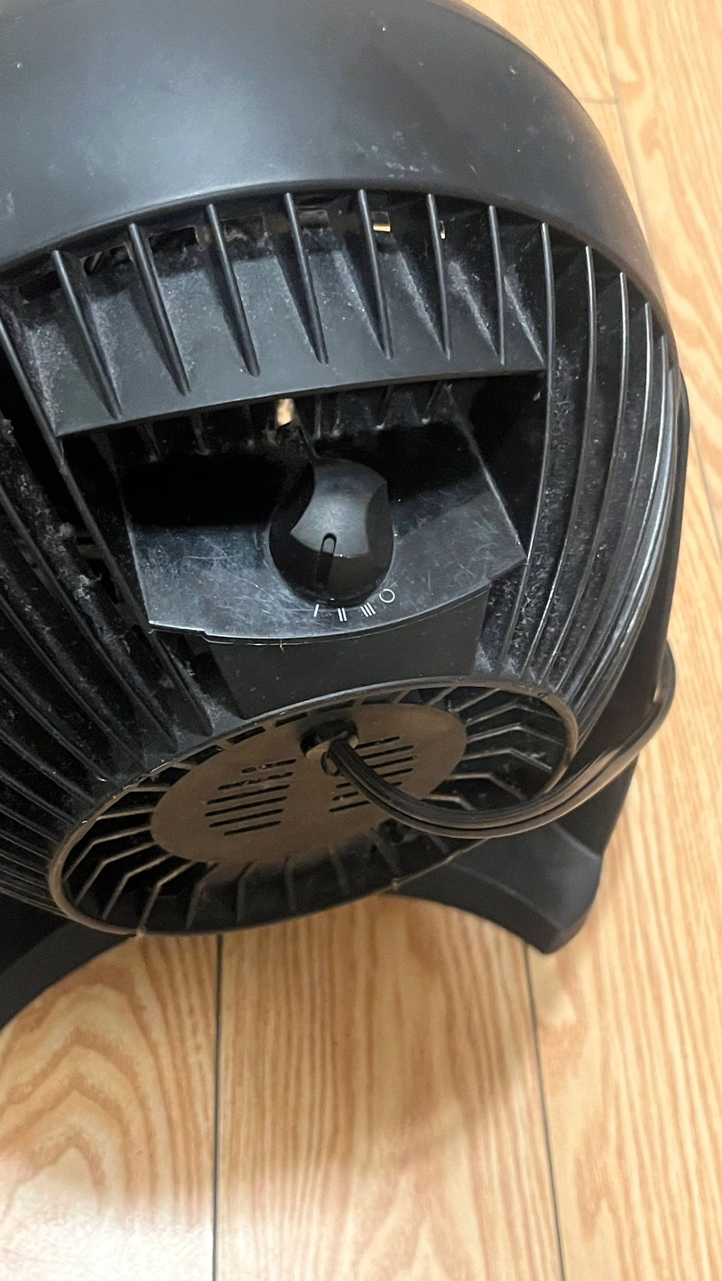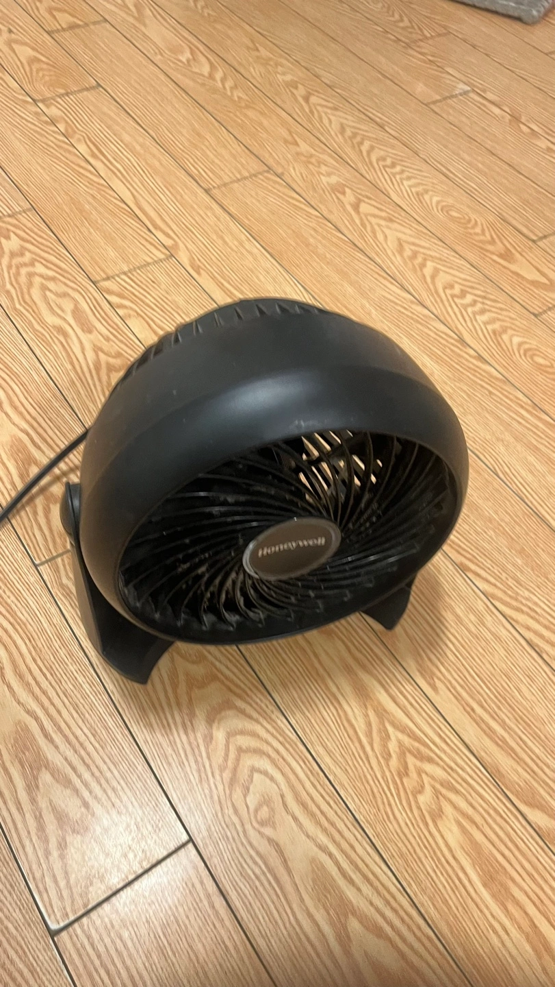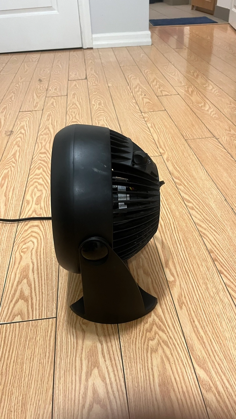 Black, small personal fan. Works well for a desk or bedside table. Good for cooling small spaces. Shows some dust from use but will be cleaned before selling