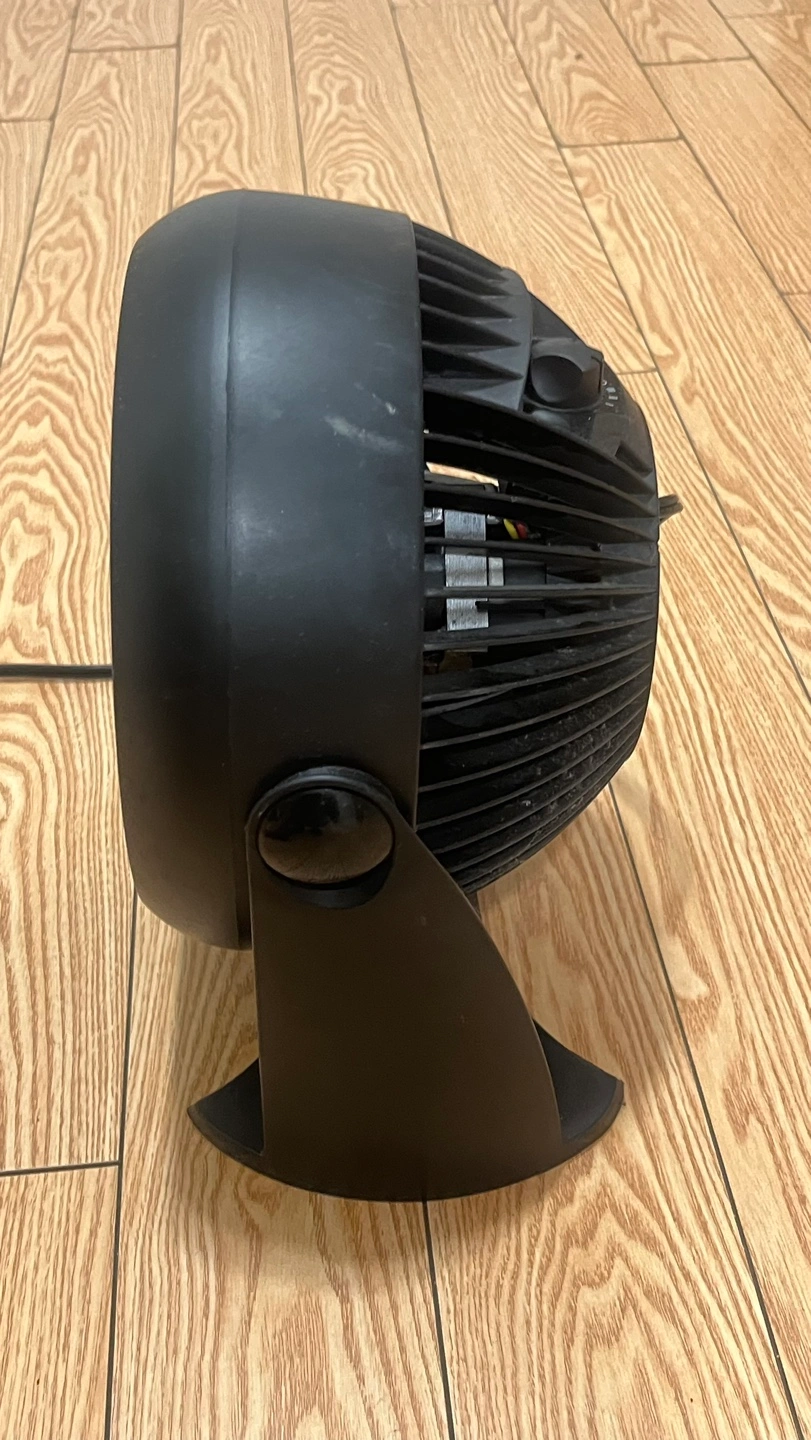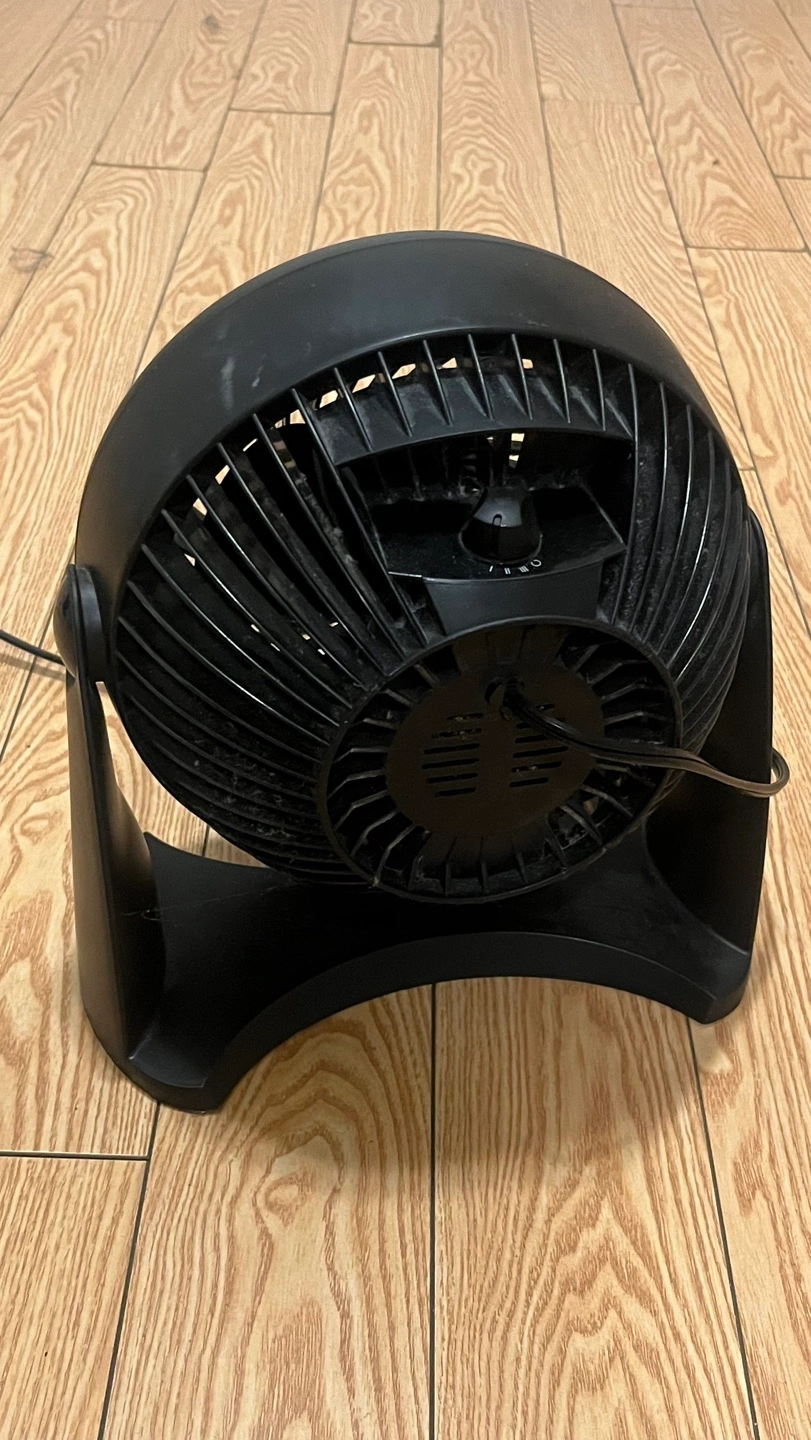Black, small personal fan. Works well for a desk or bedside table. Good for cooling small spaces. Shows some dust from use but will be cleaned before selling
