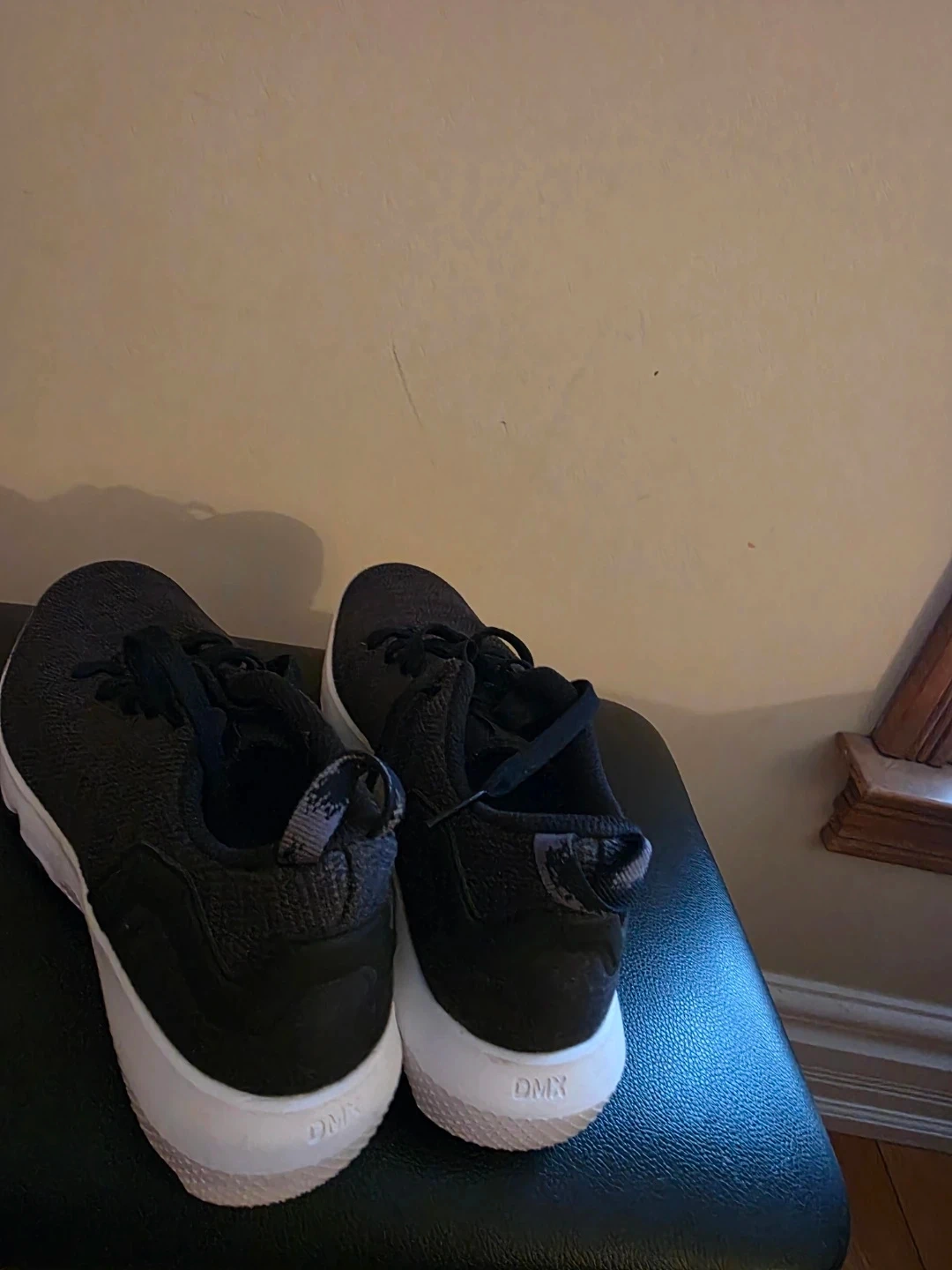 These are black Reebok DMX running shoes. They feature a breathable mesh upper and a supportive sole. These shoes are great for everyday runs or gym workouts!