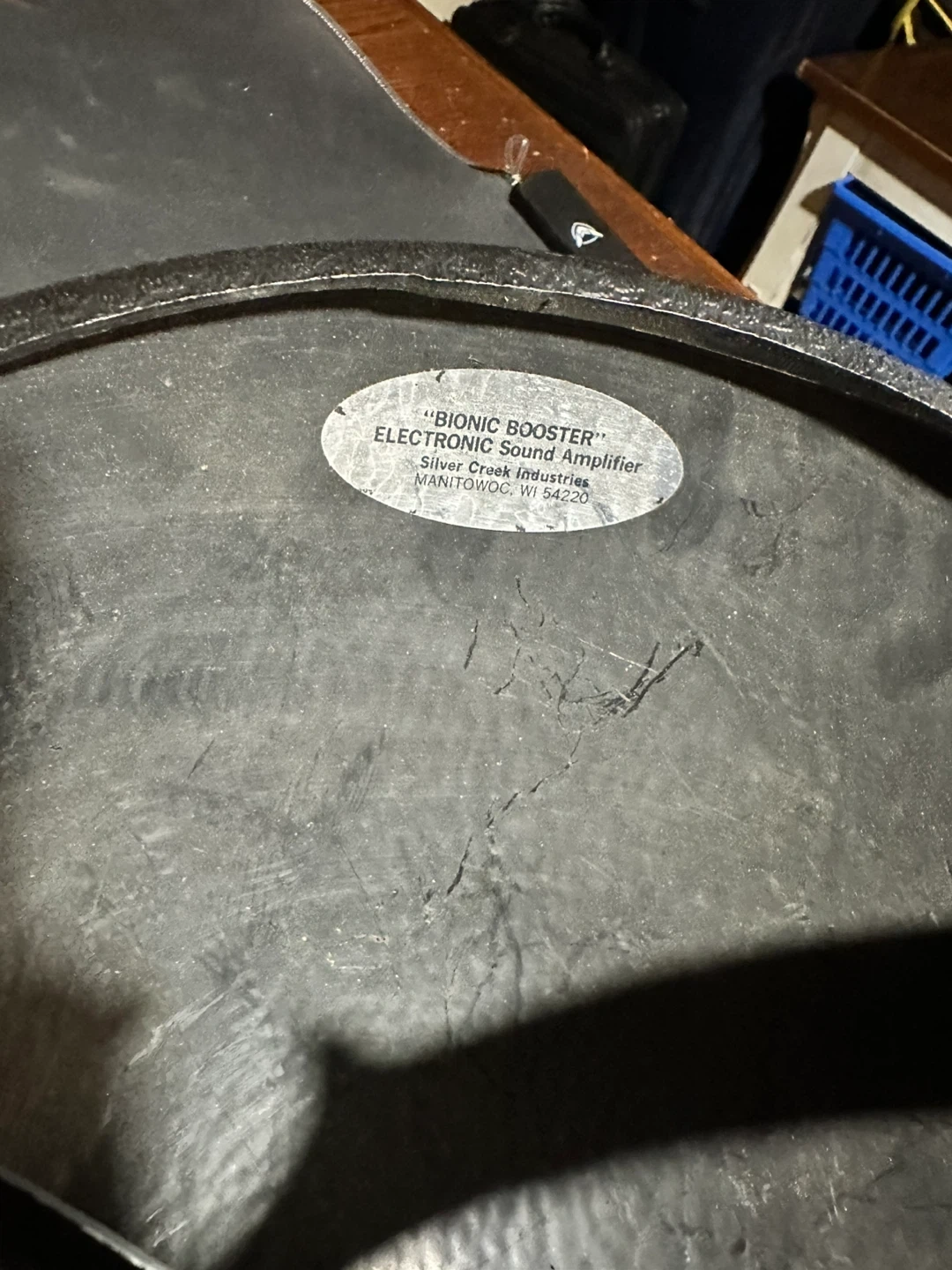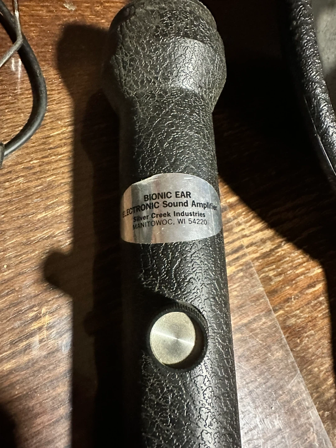 This Electronic Sound Amplifier comes with “Bionic Booster”, “Bionic Ear”, and a set of headphones. It's made by Silver Creek Industries. Great for enhancing ambient sounds!