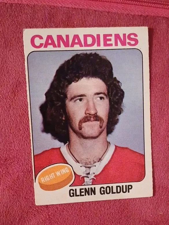 This is a vintage hockey card featuring Glenn Goldup of the Canadiens. It's a collectible item for any hockey fan. The card is in good condition for its age.