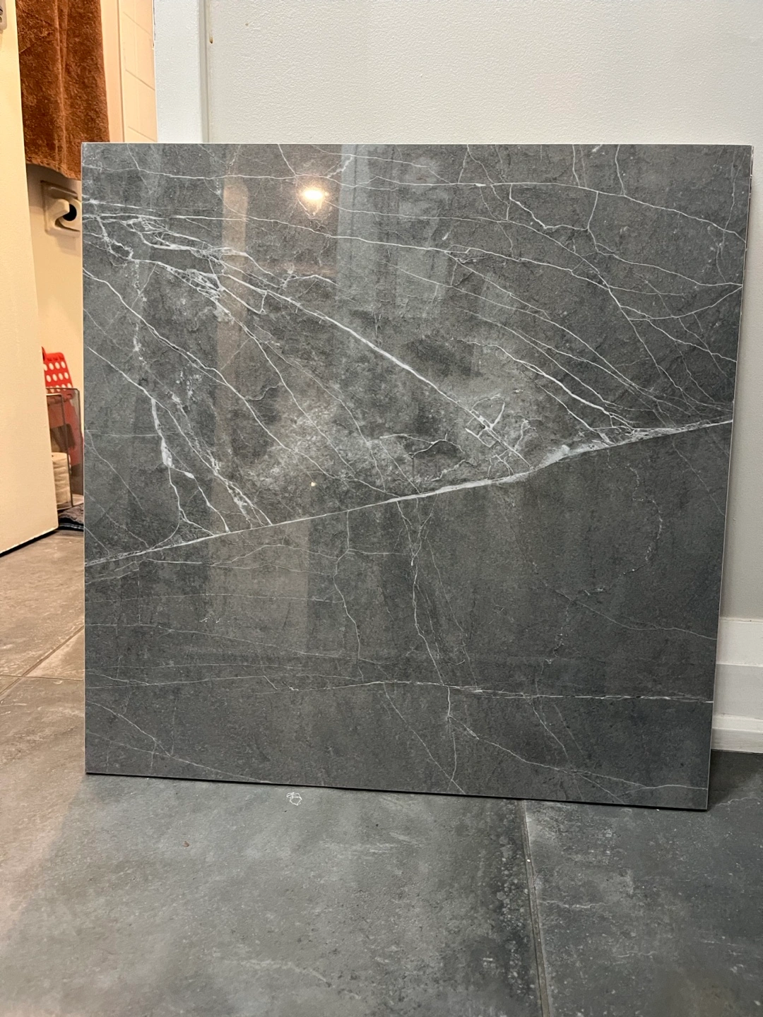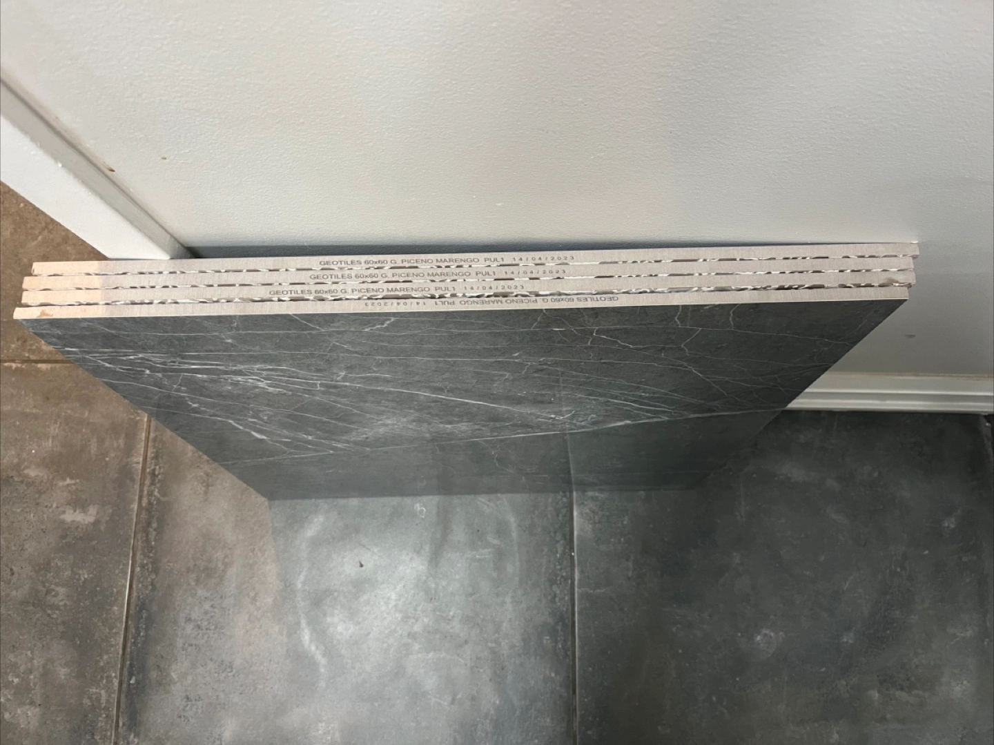 Large marble tiles 60x60. Dark/light grey with white veining. Unused. Perfect for flooring or countertops. Covers about 15 square feet. Very heavy