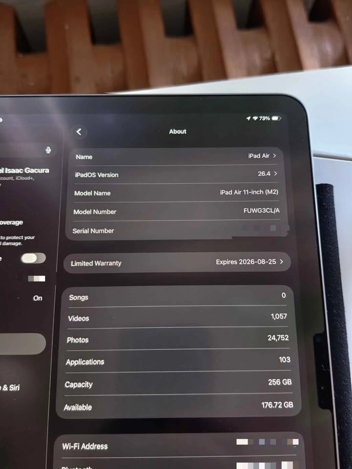 The iPad is in mint condition with 100% battery health. It's still within the limited warranty period therefore you can still add AppleCare+ with an Apple Store visit.