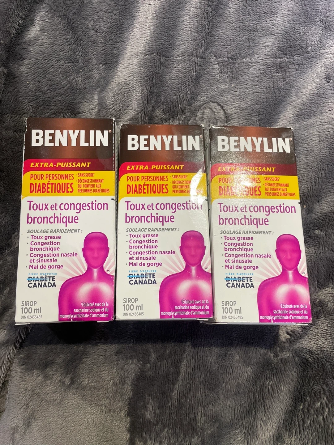Benylin Extra Strength Cough & Chest Congestion Syrup is sugar-free and decongestant suitable for diabetics. It provides fast relief for cough with phlegm, chest congestion, nasal and sinus congestion, and sore throat pain. Each bottle contains 100 mL of syrup. Expiry date is 2026/08.