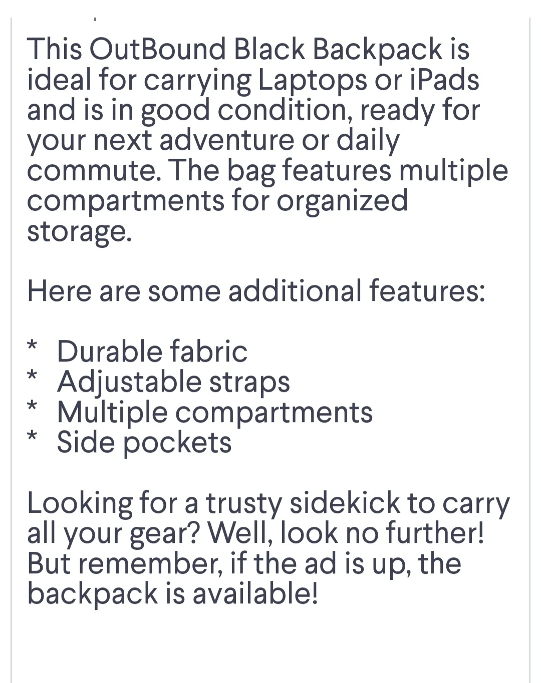 I have more Backpacks Crossbody Bags Belts Bags and Gym Bags for sale different prices different colors and different Brands if you want you can come to see all Bags .