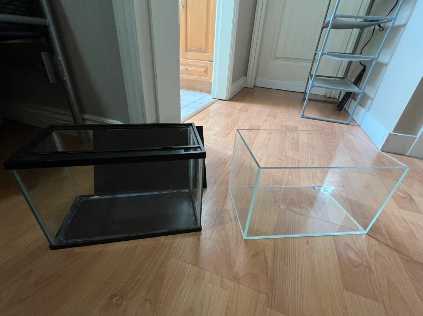 This bundle includes a Fluval filter and two glass aquarium tanks, one with a black frame and another frameless. The filter is designed for 5-10 gallon tanks. It's great for setting up a new aquarium or expanding an existing one!