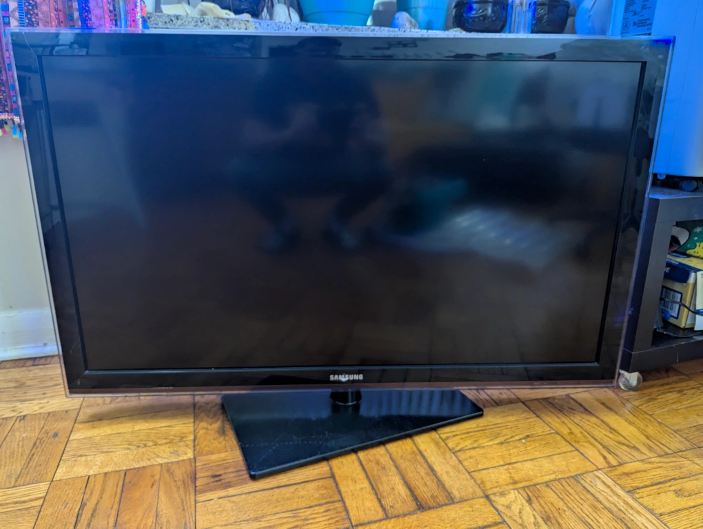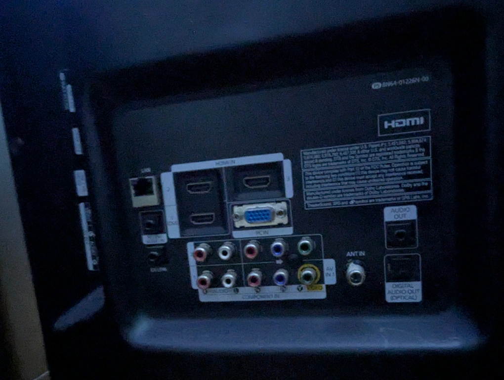 46 inch Samsung TV with multiple input options, including HDMI, Optical ARC and component inputs.