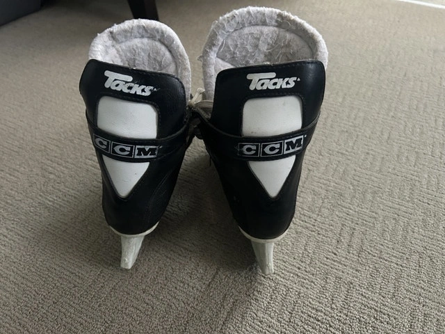Get ready to hit the ice with these CCM Tacks ice skates, perfect for young hockey enthusiasts! These skates are in used condition, showing some wear and tear, but they're ready for plenty more ice time. Remember to check out my other ads. Discount available for multiple purchases!