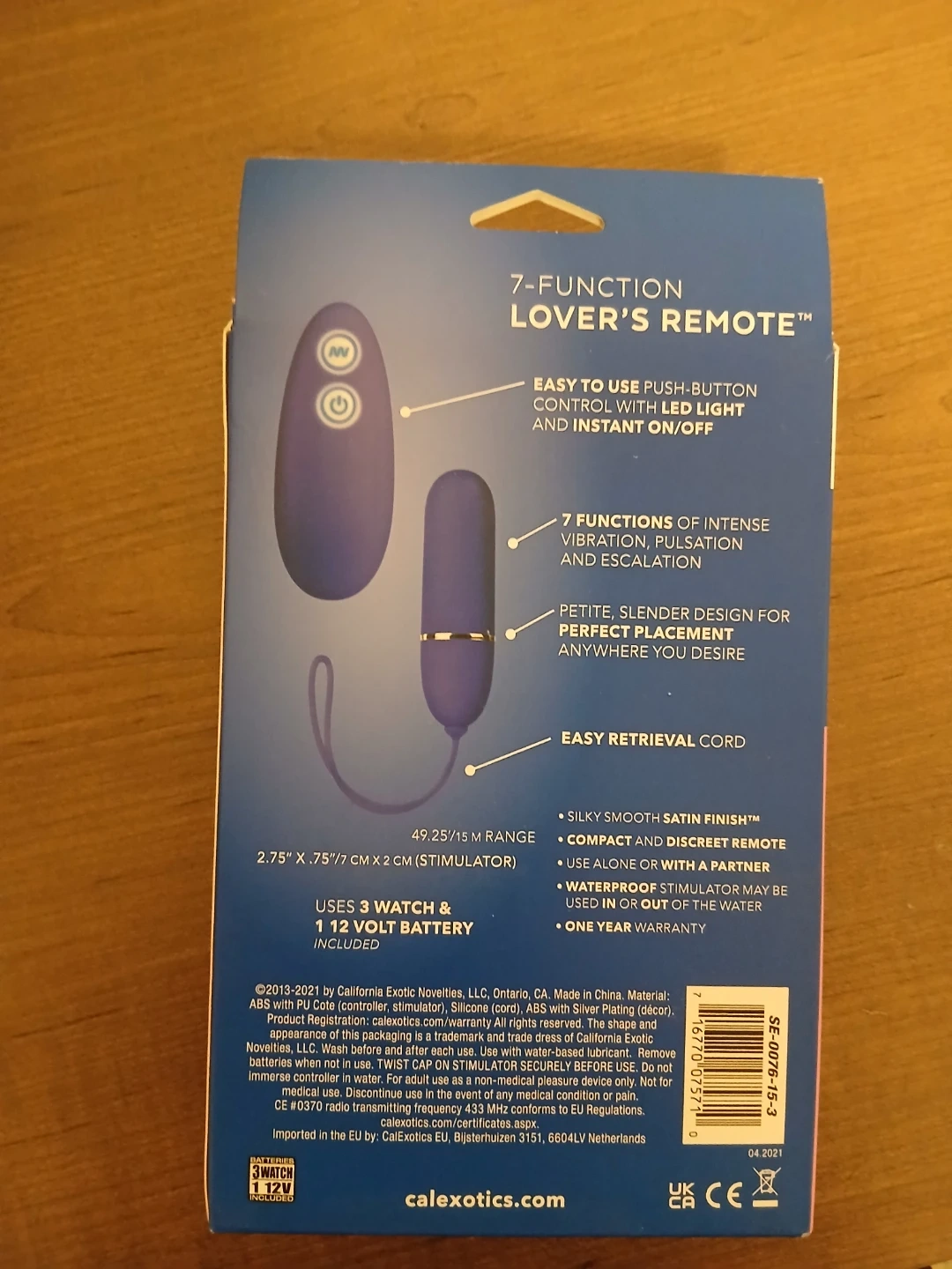 This is a 7-function lover's remote. It's a compact and discreet purple stimulator. It's waterproof and battery-operated. Perfect for couples looking to spice things up in the bedroom. Brand new unopened in box.