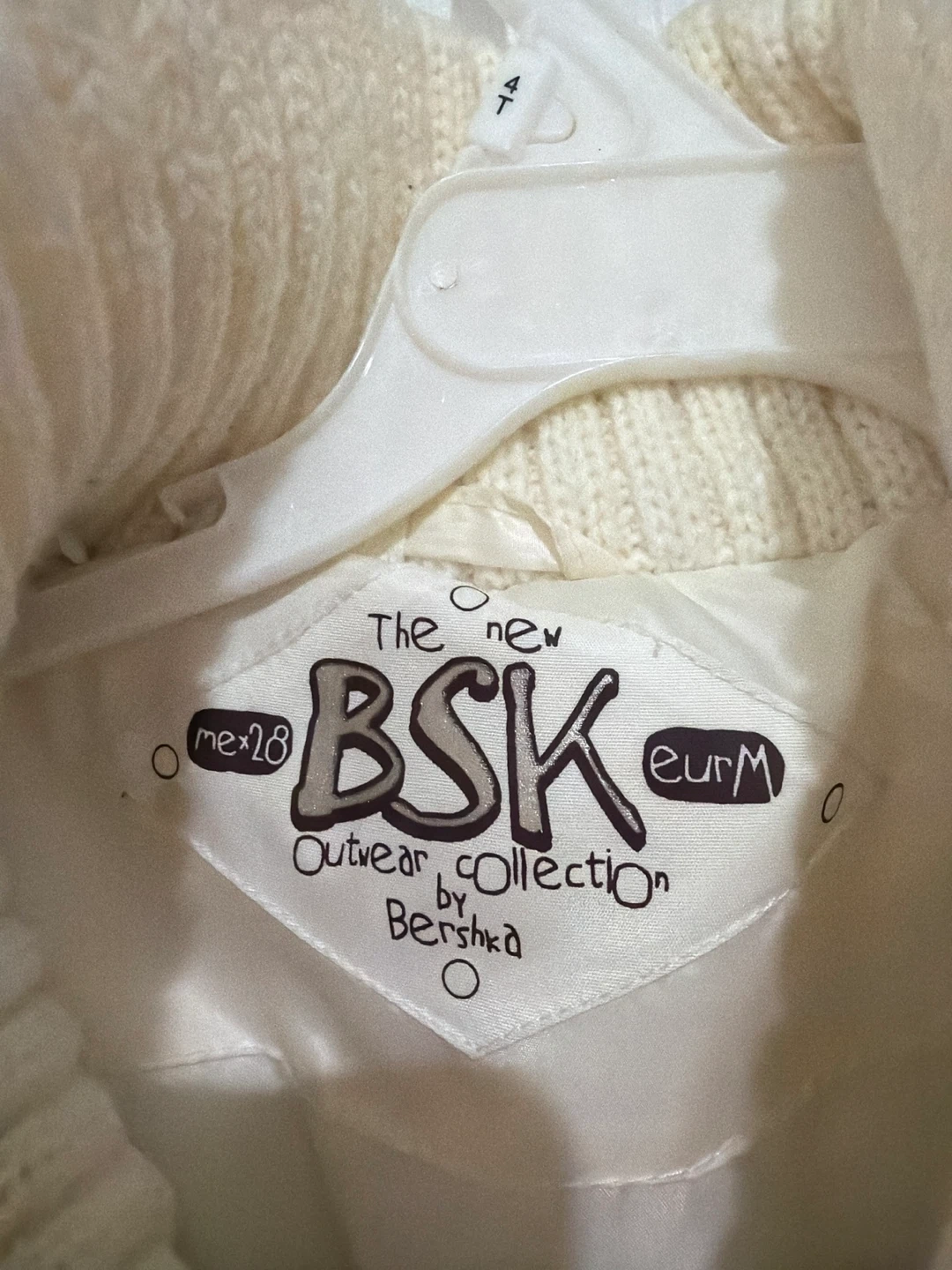White BSK Puffer Jacket with Ribbed Collar and Cuffs
