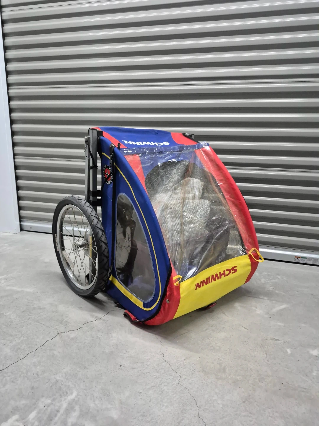This Schwinn child bicycle trailer is perfect for taking your little one on bike rides. It features a durable frame and wheels for a smooth journey. Your child will have a comfortable and safe space during your cycling adventures.