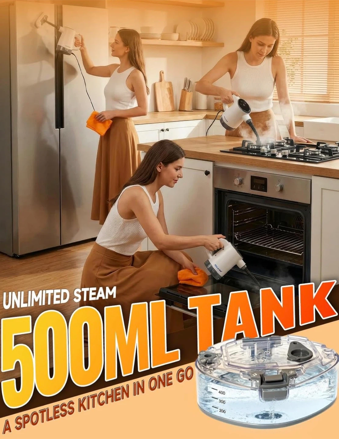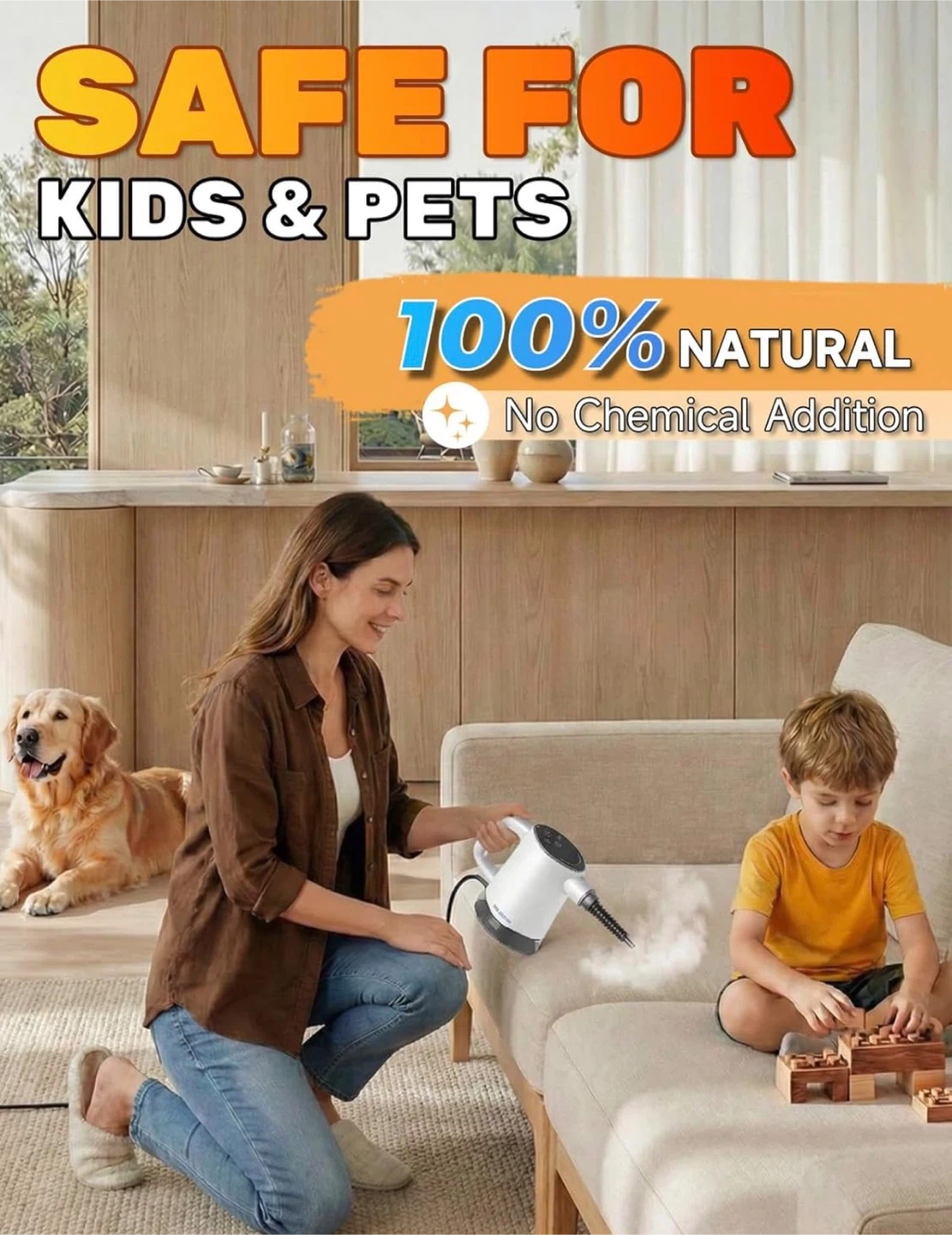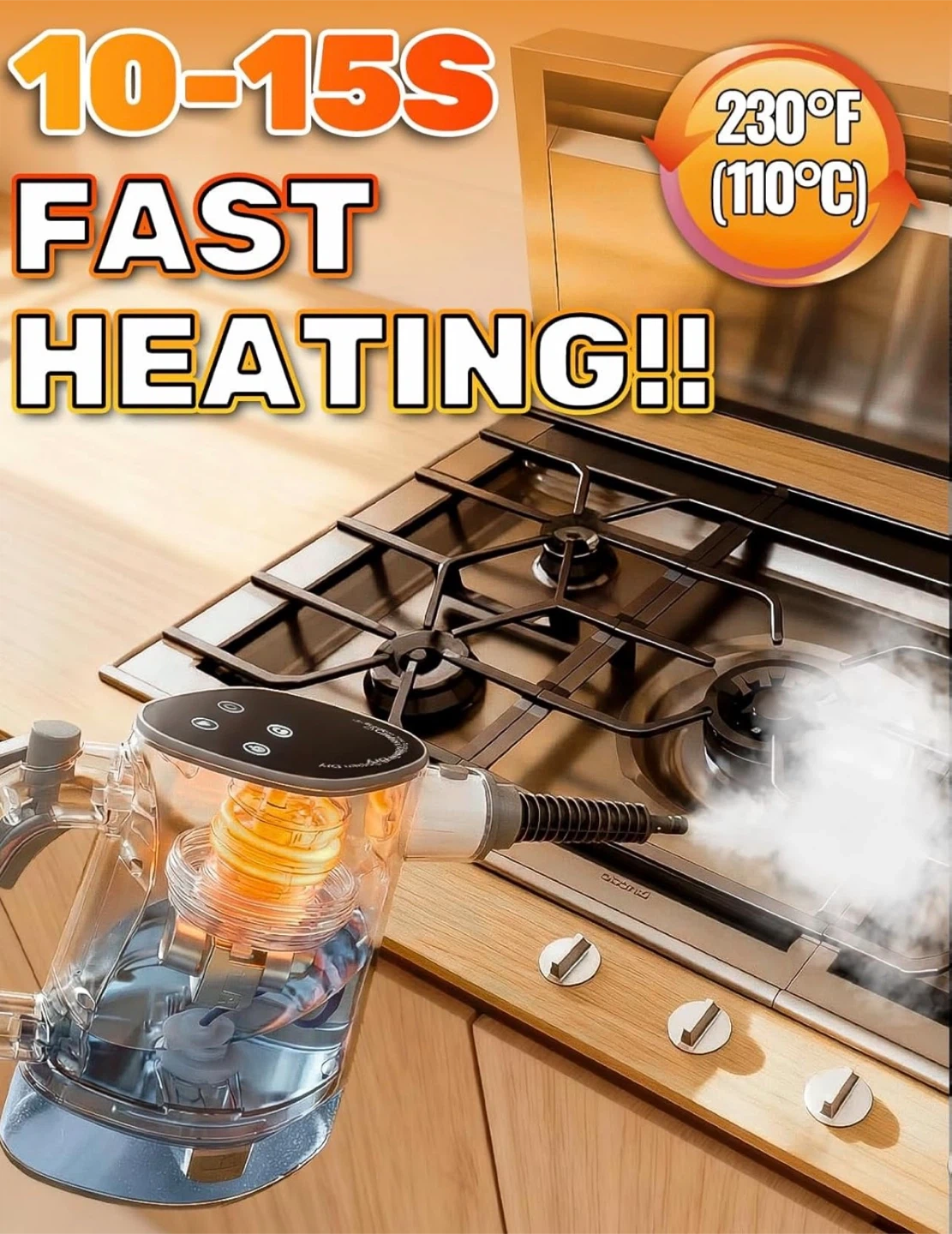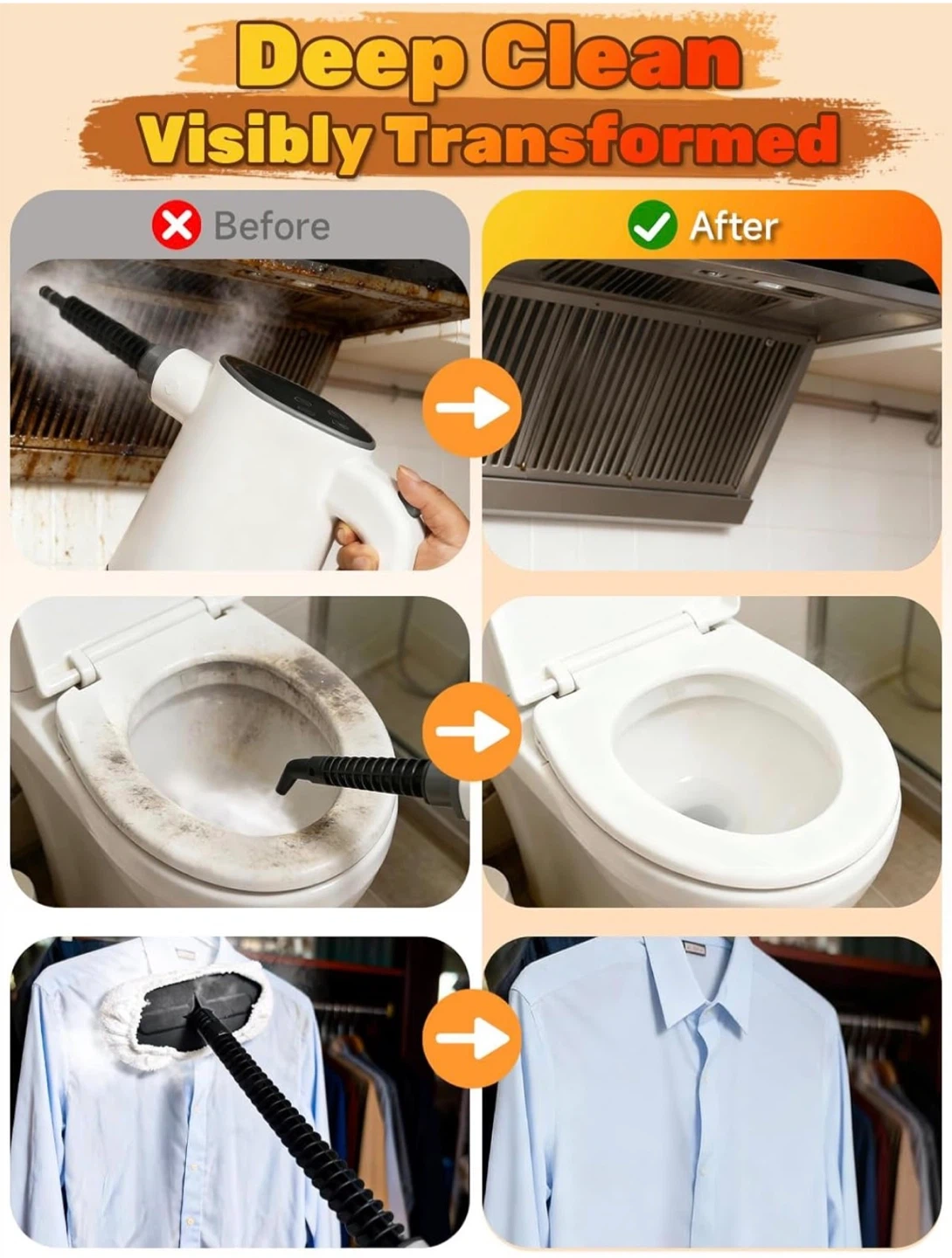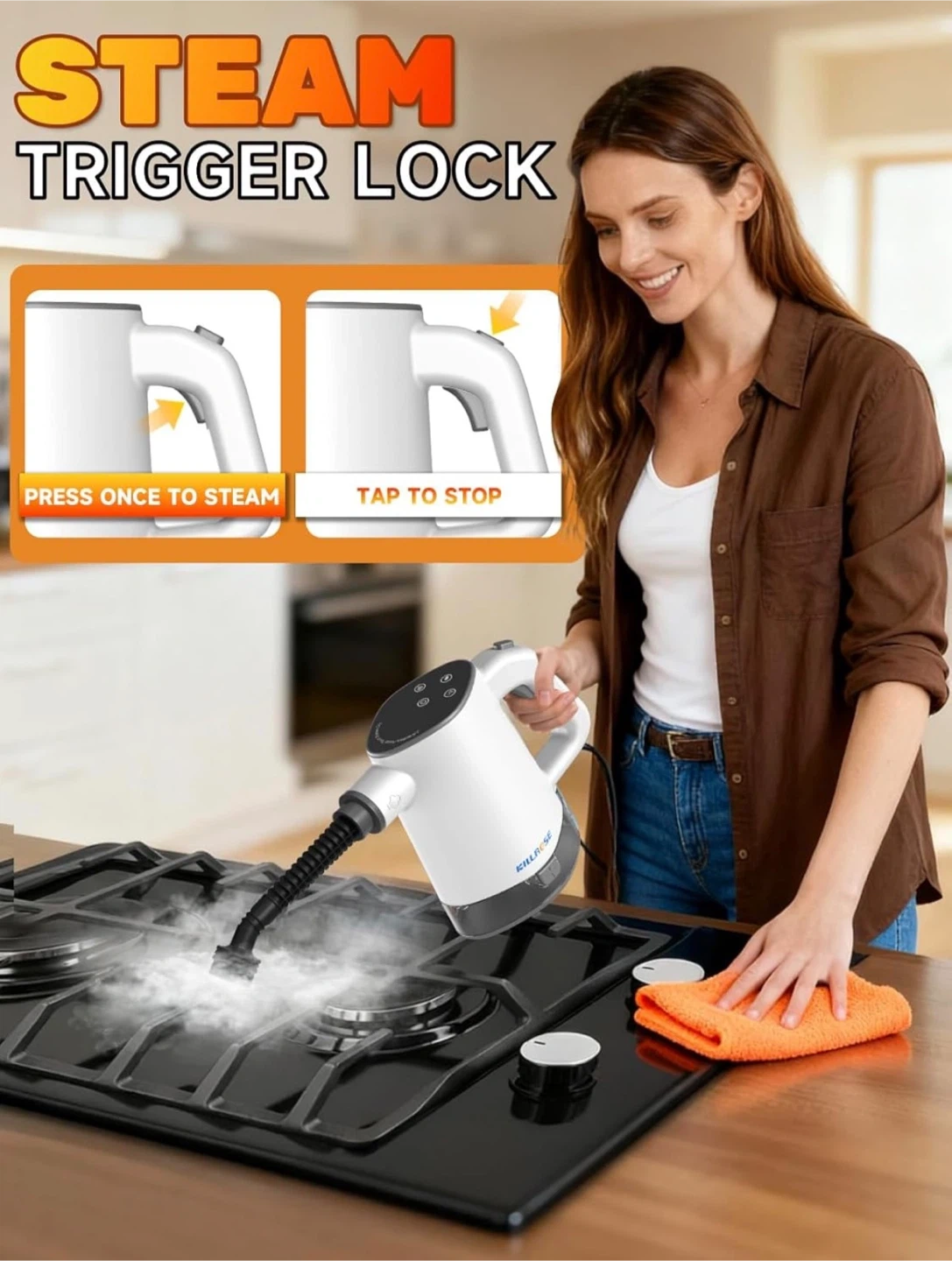 Handheld Steam Cleaner, Pressurized Steam Cleaner with 10–15s Fast Heat, Dual Power Modes & Self-Clean, Multi-Surface Steamer with 12 Accessories for Kitchen, Bathroom, Car