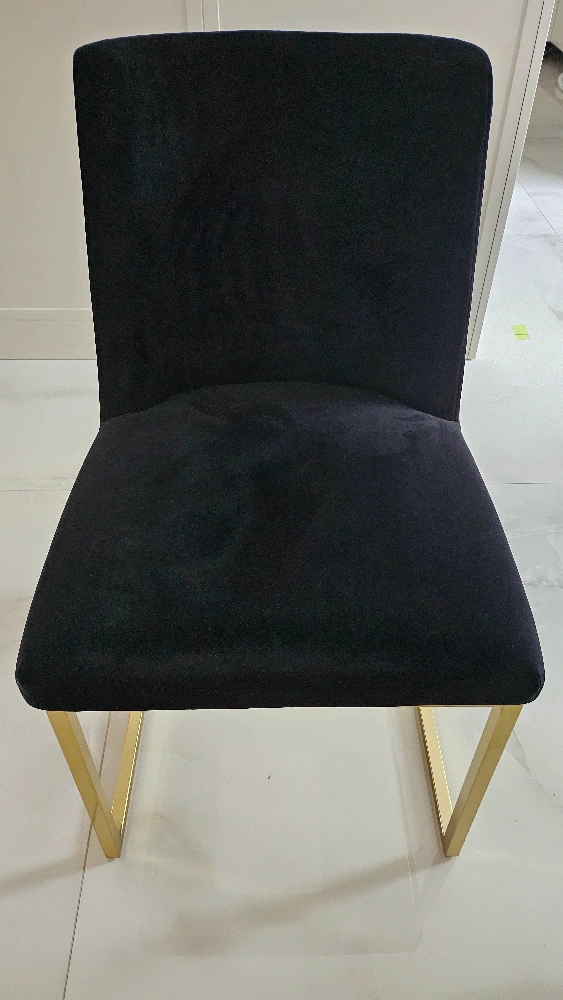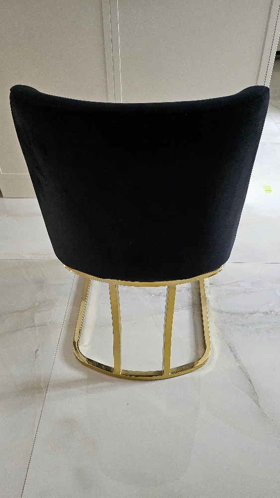 Chairs: black upholestered (velvet) fabric, metal gold legs