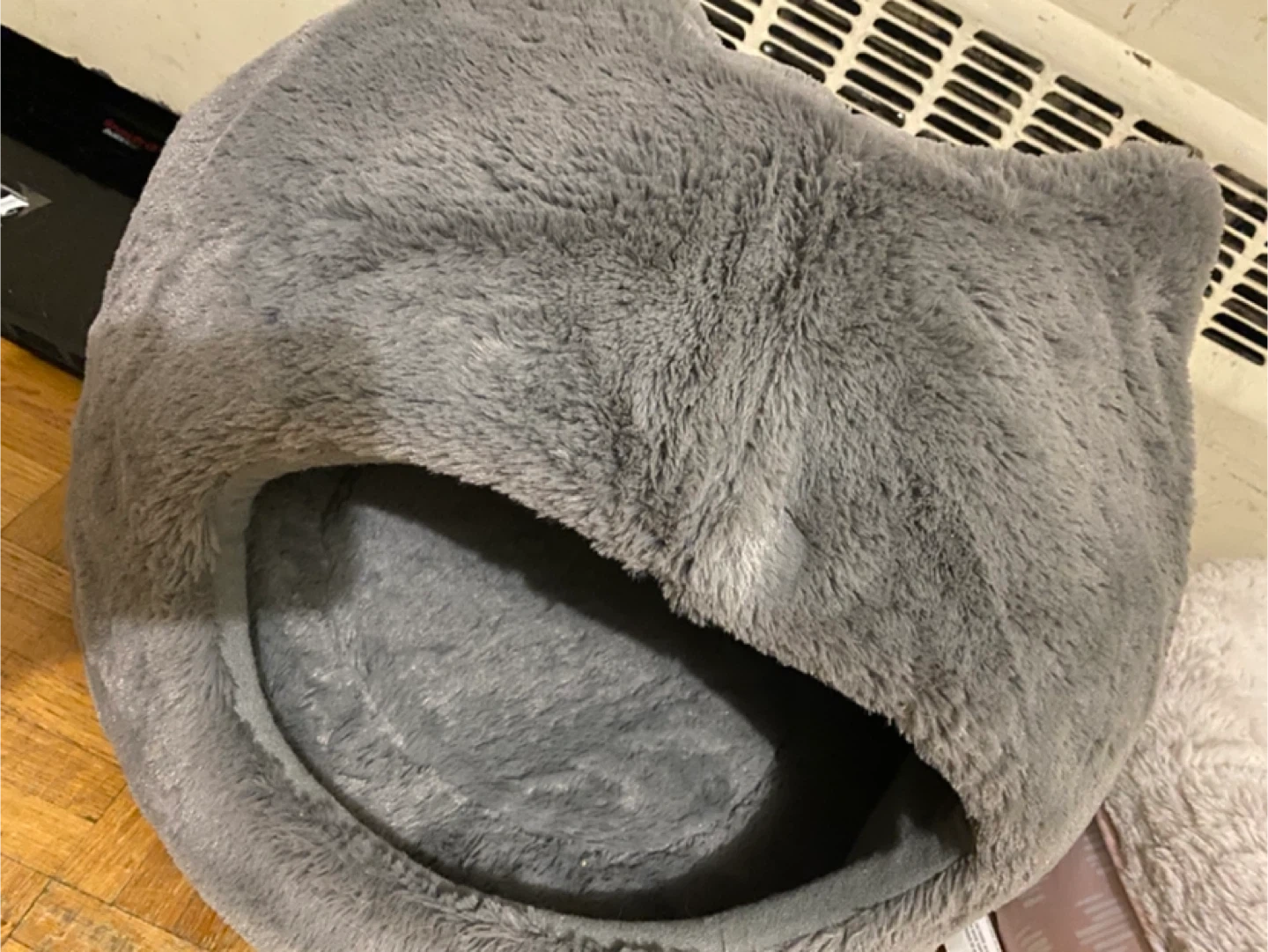 Selling a cozy cat bed bundle! Includes a grey cave-style bed and a soft pink round bed. Perfect for your furry friend to snuggle up in.