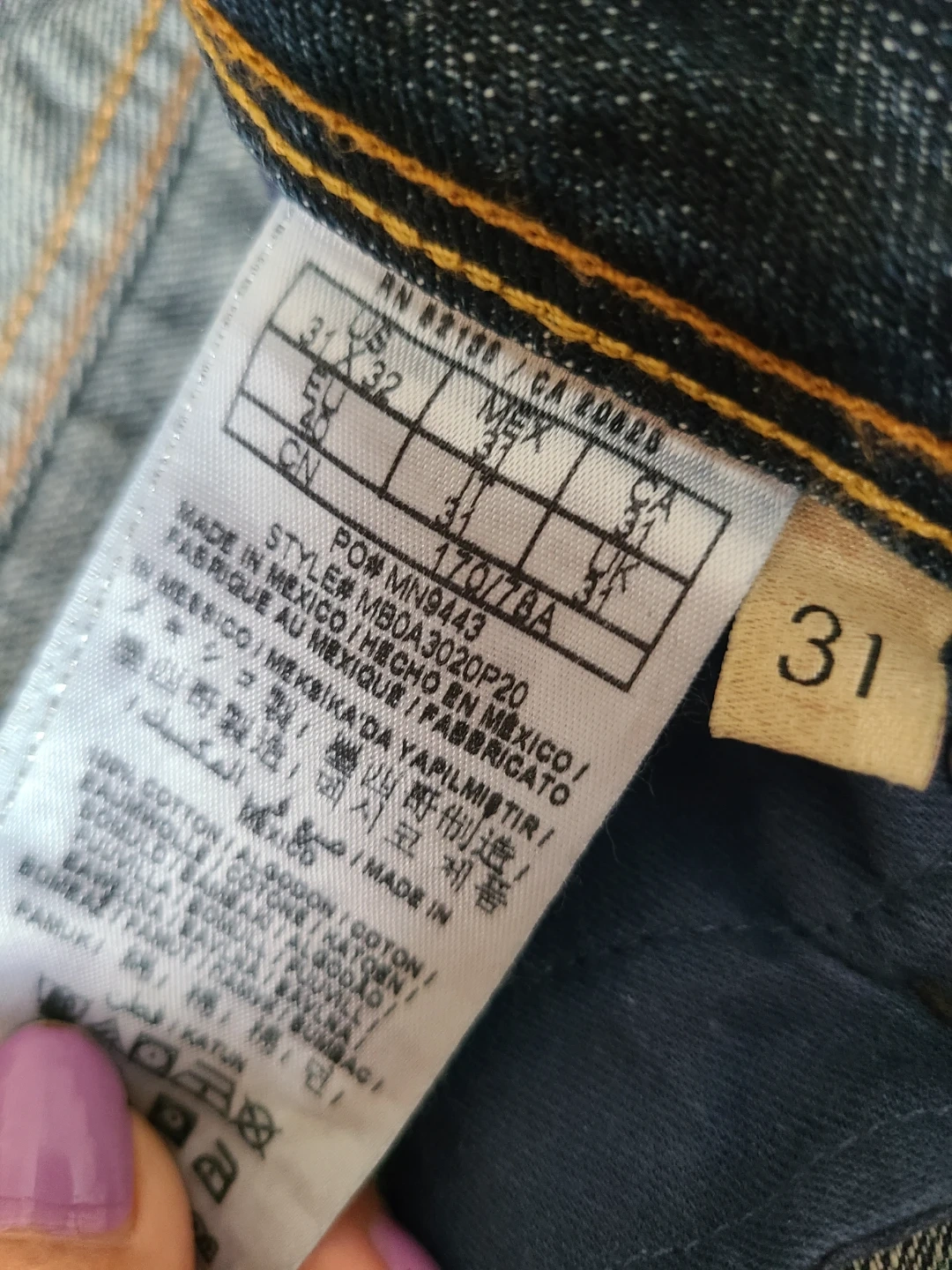 Selling a pair of Guess 1981 jeans in a size 31. They have a distressed look. The material is 100% cotton.