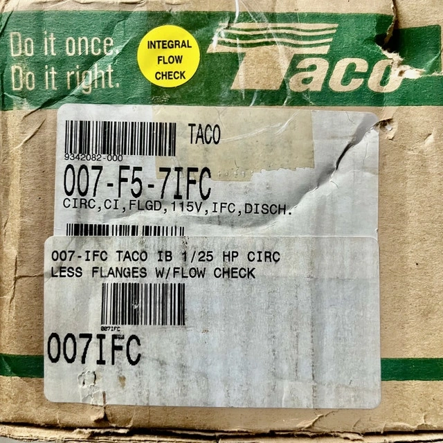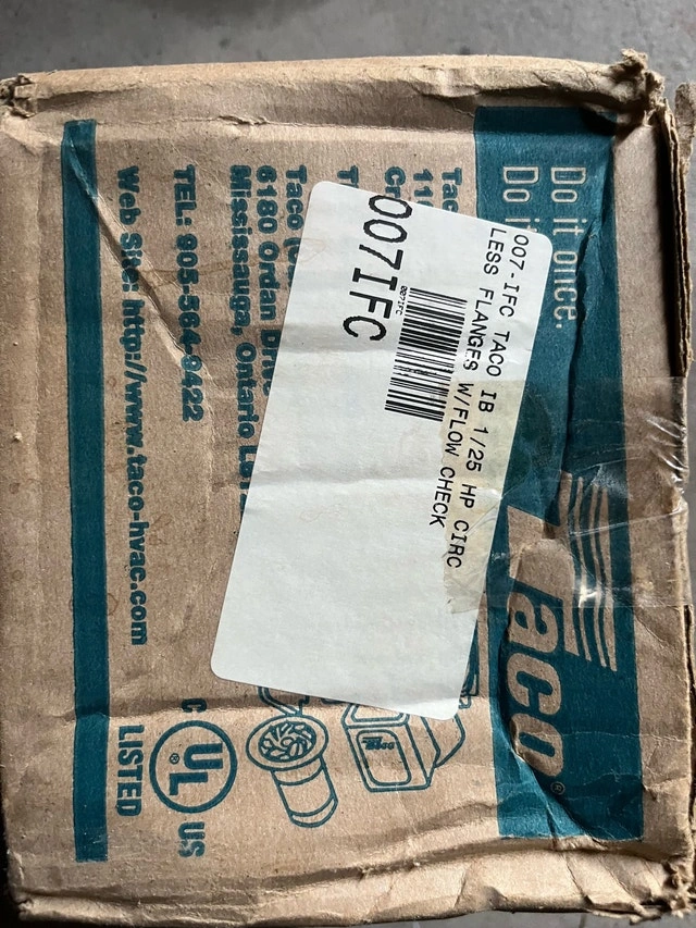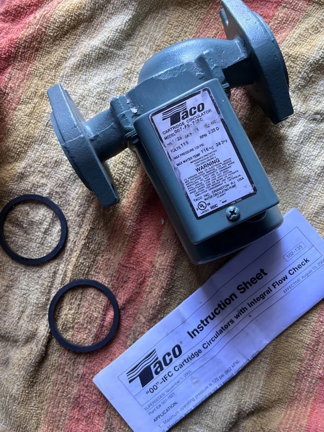 Selling a Taco 007-F5-7IFC Cartridge Circulator for hot water heating systems. Features a 1/25 HP motor and integral flow check. This unit is reliable and maintenance-free. It's in good, unused condition, though the box is a bit rough. Manual included. If the ad is up, it's available.