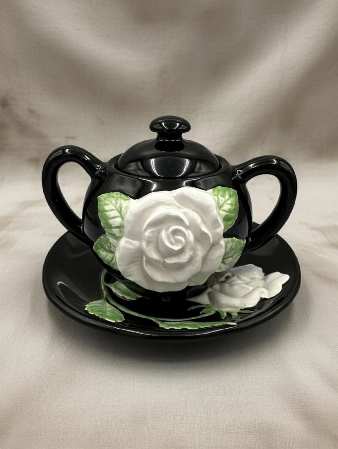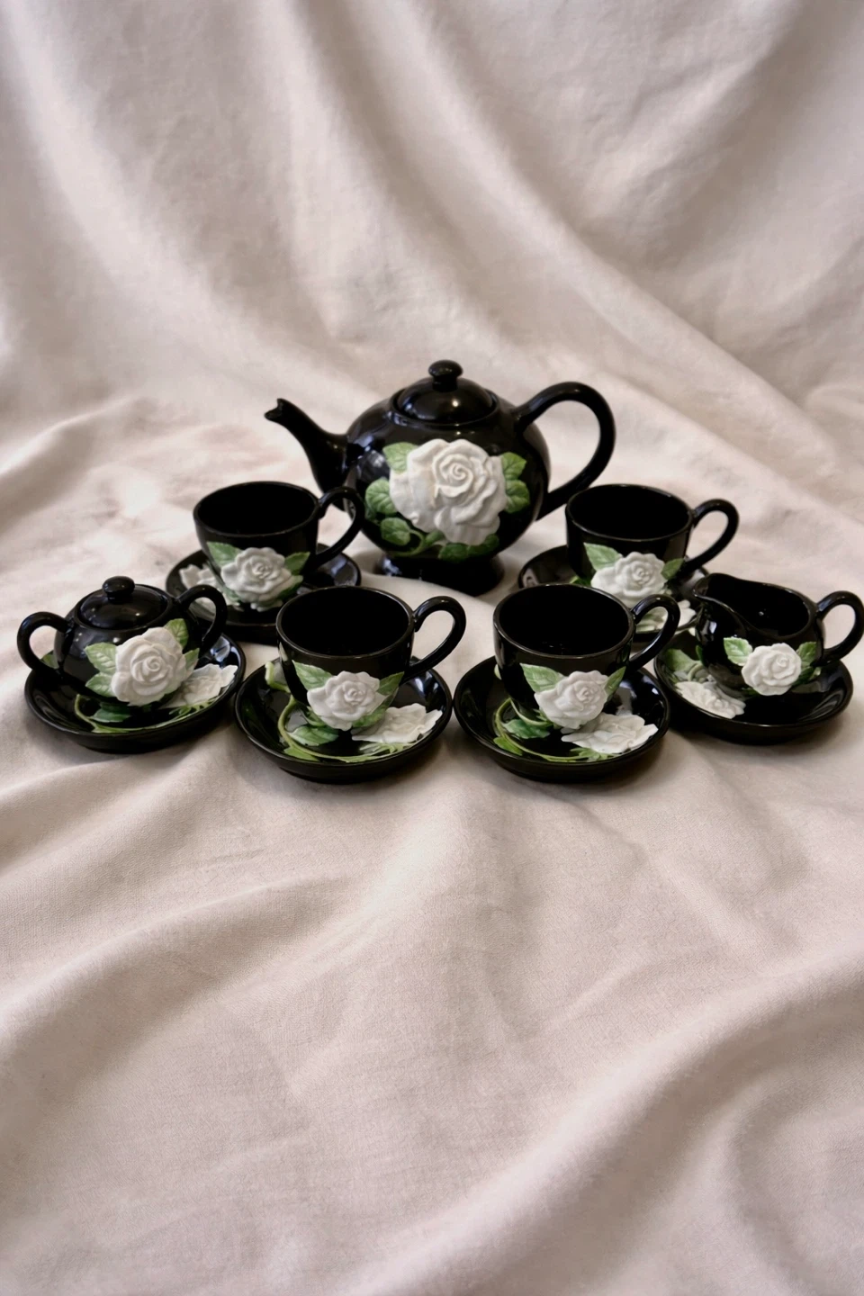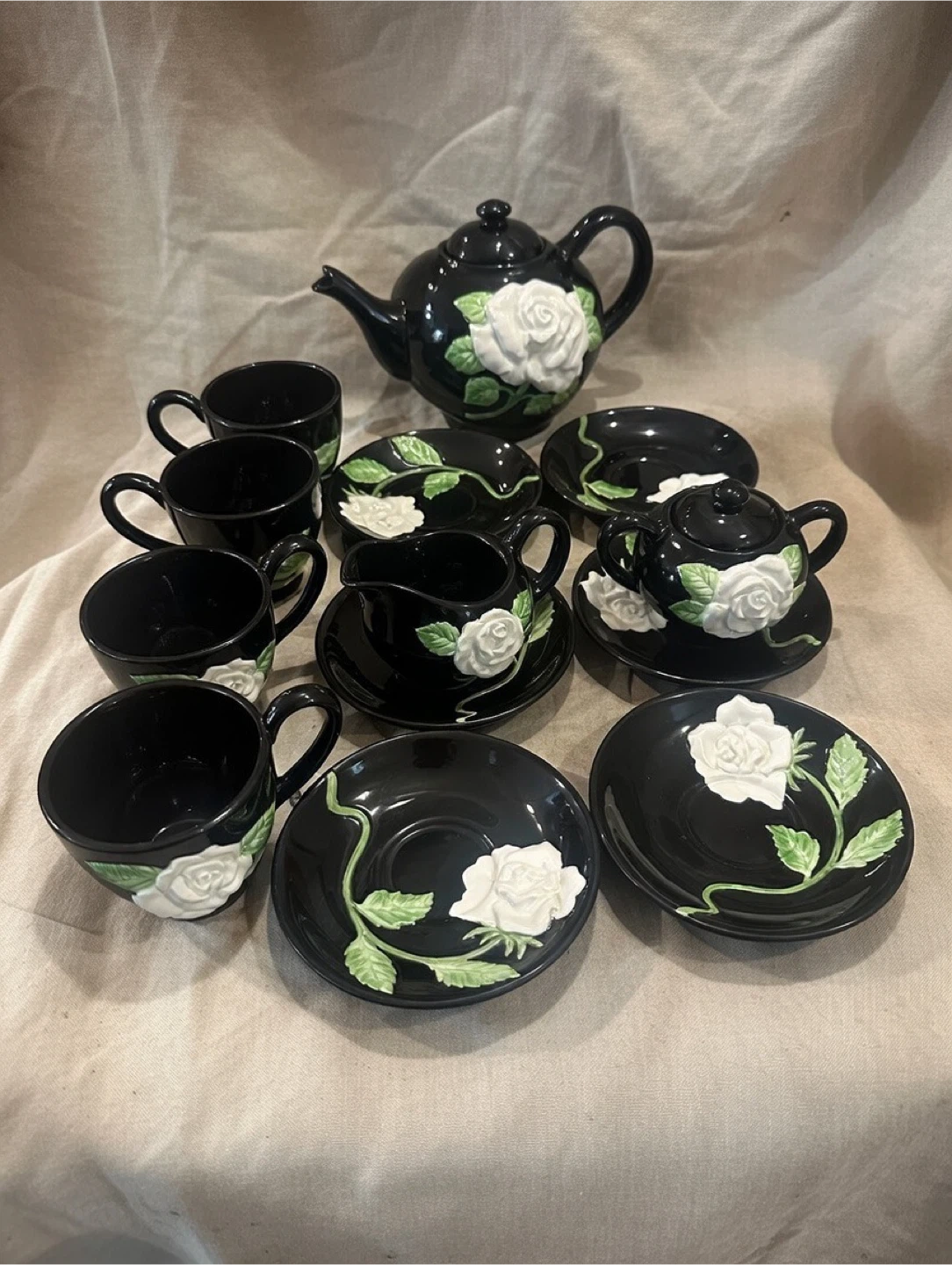 Fitz and Floyd, 13 piece set. Tea pot, creamer, sugar, 4 cups, 6 plates. Never used, only displayed.