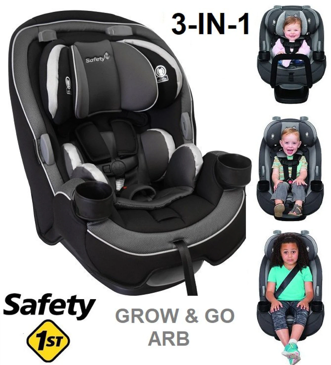 This Safety 1st car seat converts to 3 modes of use, supporting kids from birth up to 10 years. It's designed to grow with your child. Features include adjustable headrest and harness for a secure fit. Comes with cup holders and plush padding for comfort.