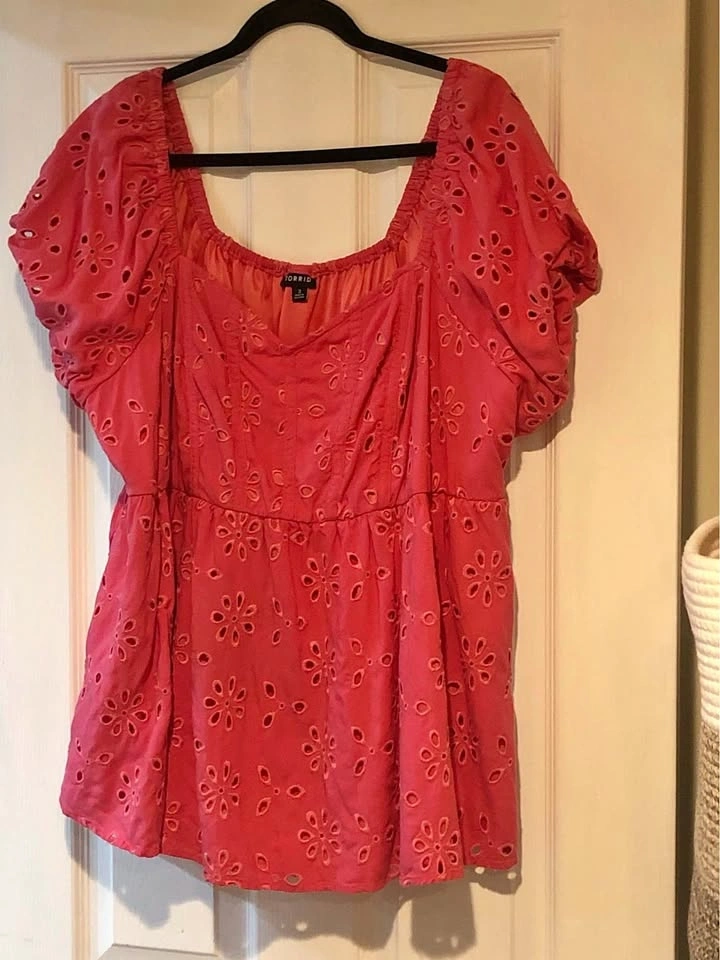 Torrid Pink Eyelet Puff Sleeve Top