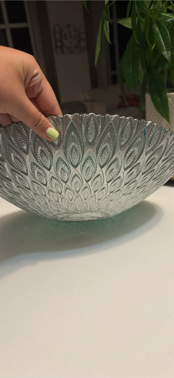 Selling a decorative silver bowl with a unique design. It's in great condition and would look lovely as a centrepiece or accent piece in any room!