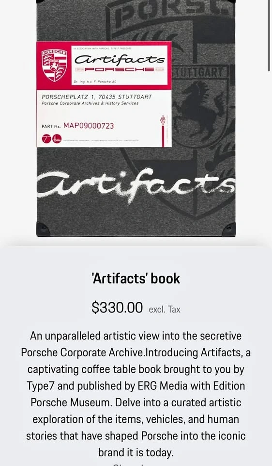 Buy & SellPorsche ‘Artifacts’ book MAP09Porsche ‘Artifacts’ book MAP09$500Brand new, never opened Porsche ‘Artifacts’ MAP09 bookConditionNewWHERE TO MEETCheck LocationView MapSELLERKimLinden Woods50 reviews0 chats·0 favorites·4 viewsSEND CHAT TO SELLERHi Kim! I’m interested in your listing.Hi Kim! I’m interested in your listing.Get the Karrot app to chatSign In to chat