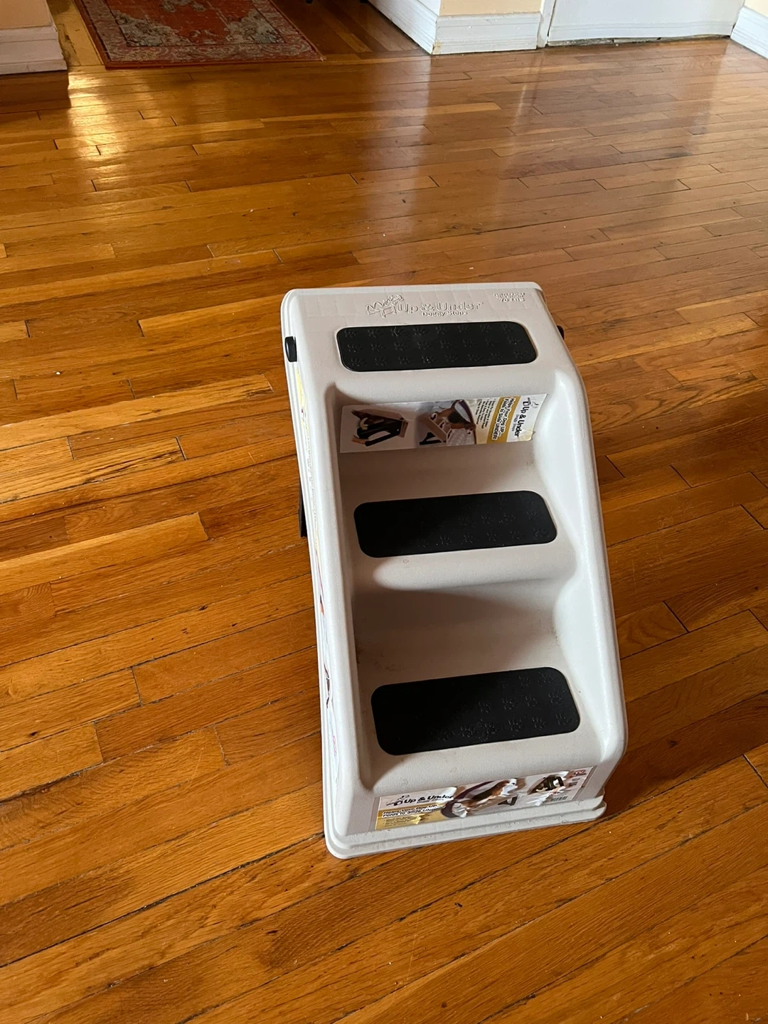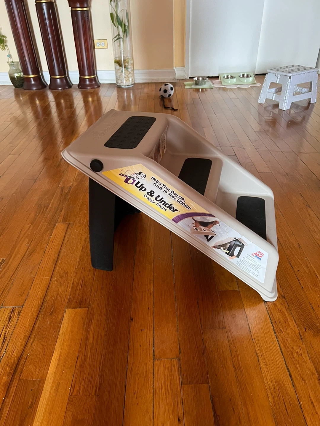 This is the Up & Under Doggy Steps. It's designed to help pets reach higher surfaces. Features non-slip treads for safety. Ideal for small dogs or older pets needing assistance.