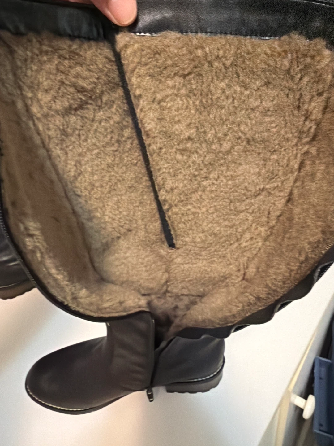 These black knee-high boots are lined with cozy lambs wool. They feature decorative buckles on the side and a full-length zipper for easy on and off. These boots are durable and stylish. Made in Vietnam.