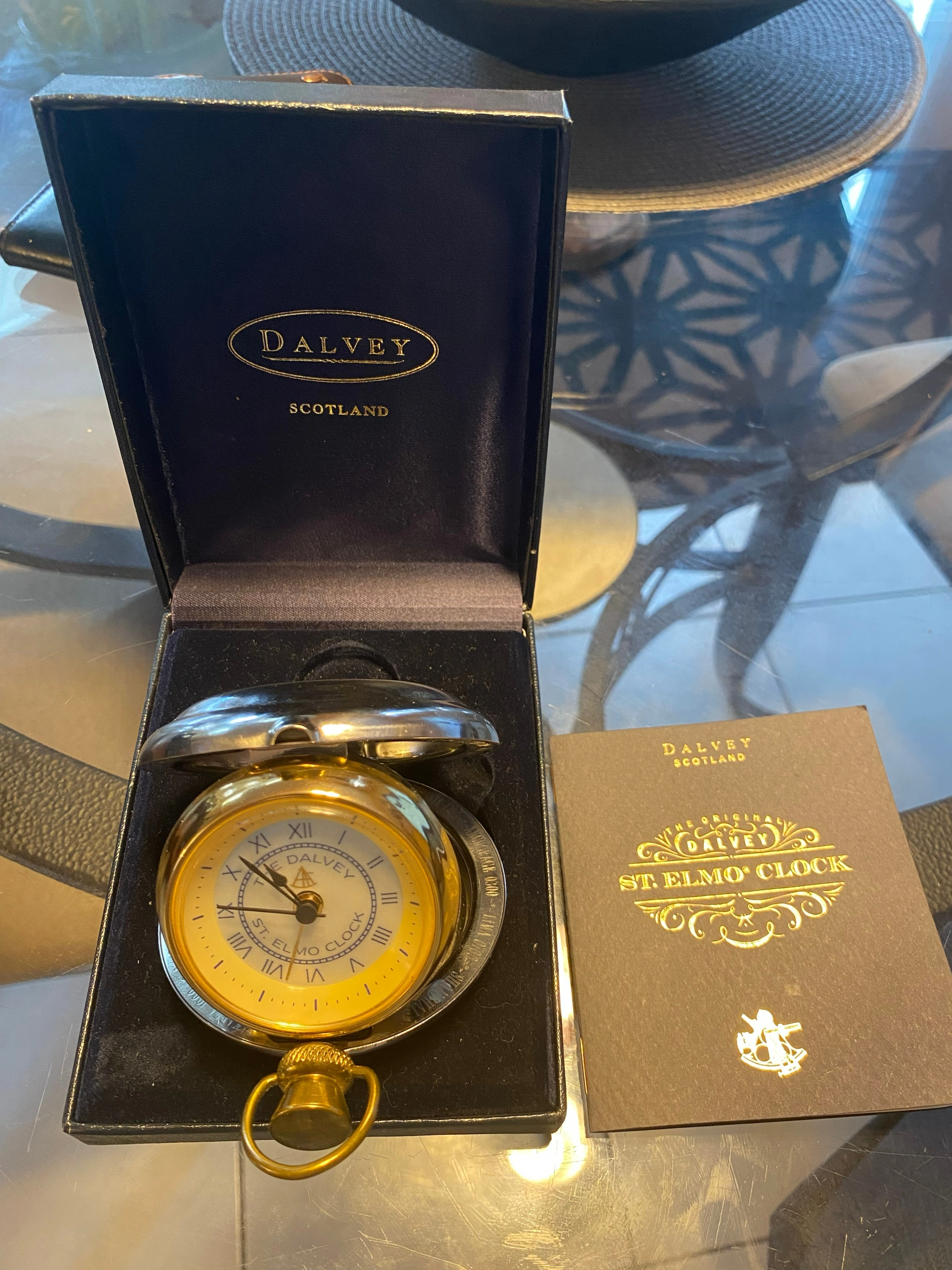 Selling a Dalvey St. Elmo's Clock pocket watch. It comes with its original box and packaging. A beautiful timepiece! Working. Shown as is as sold. Pickup in Newmarket only