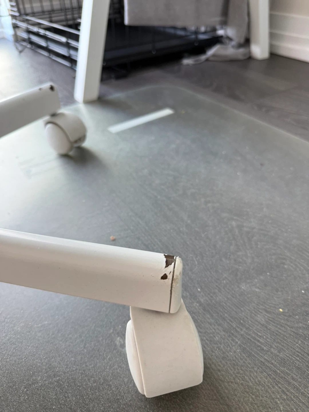 It has some minor scratches and small paint chips on the legs (visible in the photos), but this does not affect its function at all.