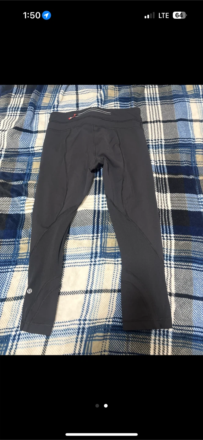 Selling a pair of Lululemon crop leggings in great condition. They are a size 6 and perfect for workouts or everyday wear! The material is comfortable and durable, ready for all your activities pick up cash only