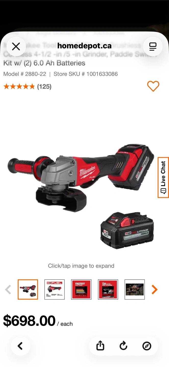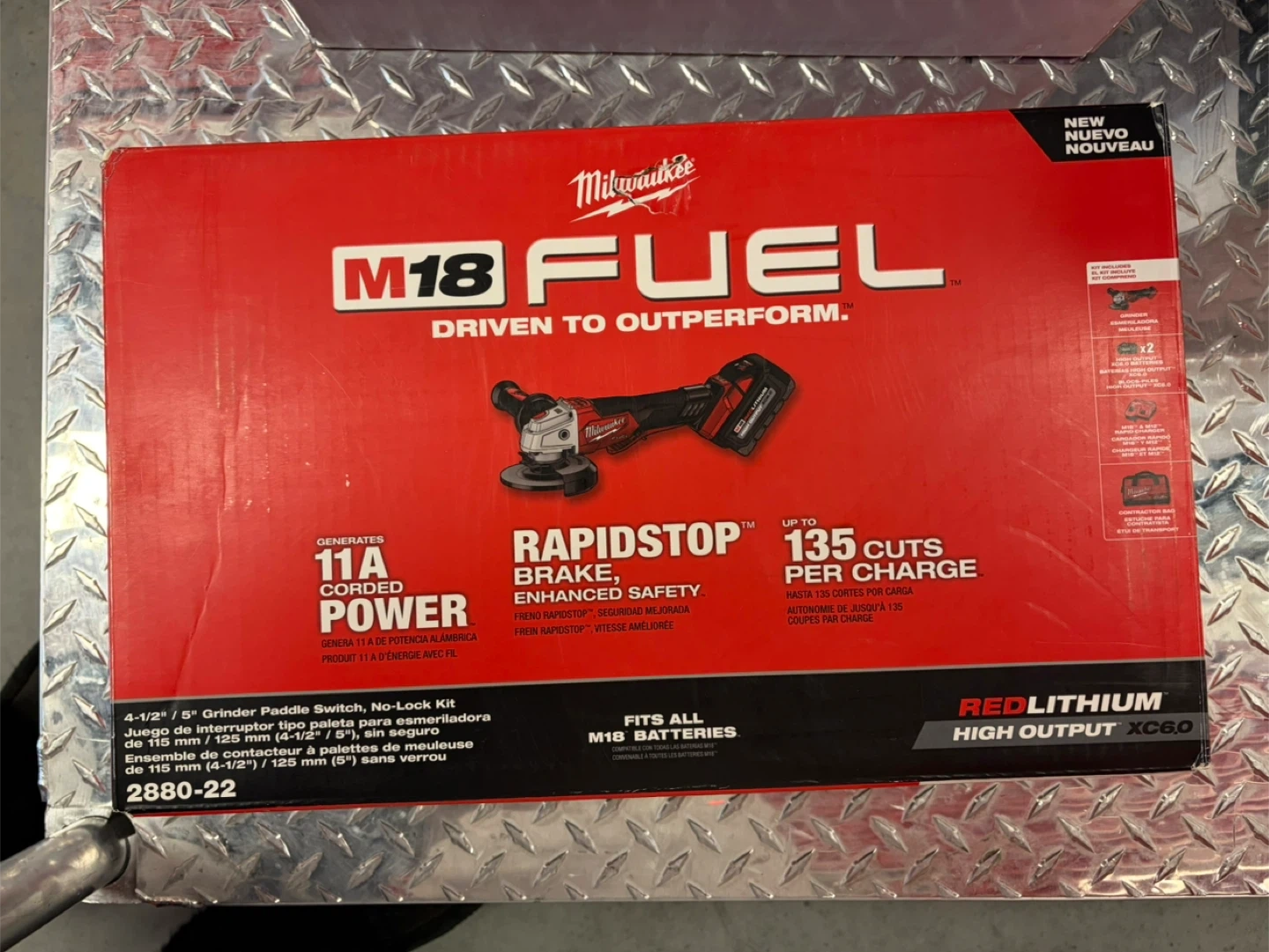Selling a Milwaukee M18 FUEL cordless angle grinder kit. It features Rapidstop brake and enhanced safety. It comes with two 6.0 Ah RedLithium High Output XC6.0 batteries and a charger. This grinder generates 11A corded power and delivers up to 135 cuts per charge.