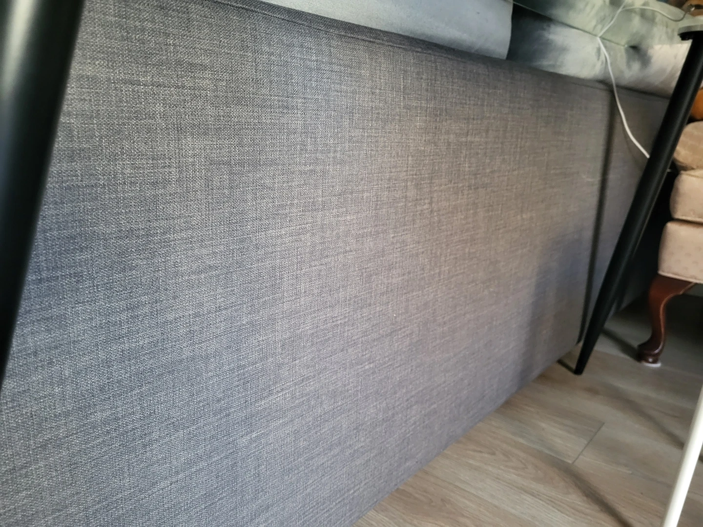 Comfortable, lightly-used grey sectional sofa with a pull-out bed feature. It's upholstered in a durable fabric. Perfect for small spaces needing extra sleeping arrangements! Could be great for dorms.