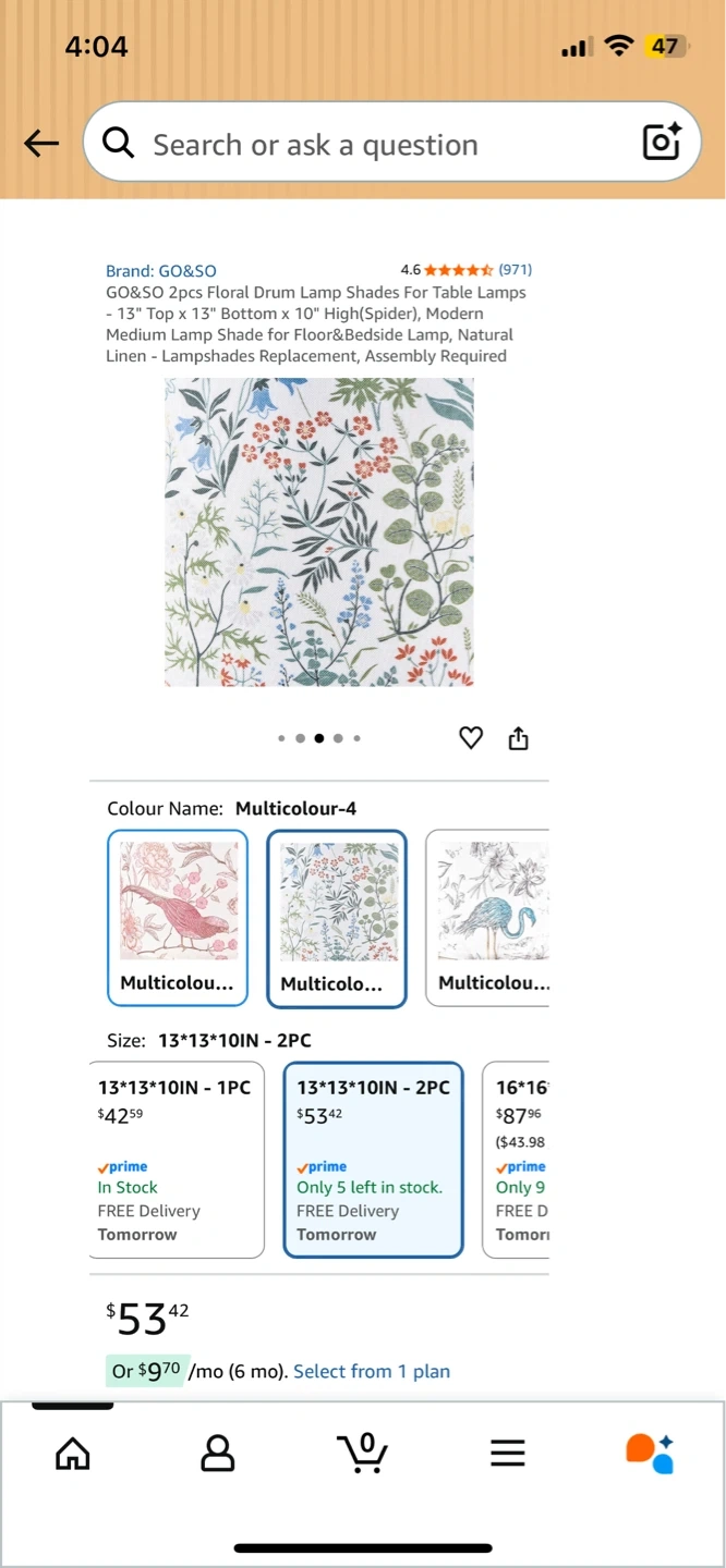 GO&SO 2pc Floral Drum Lamp Shades 13" Top 13" Bottom 10" High