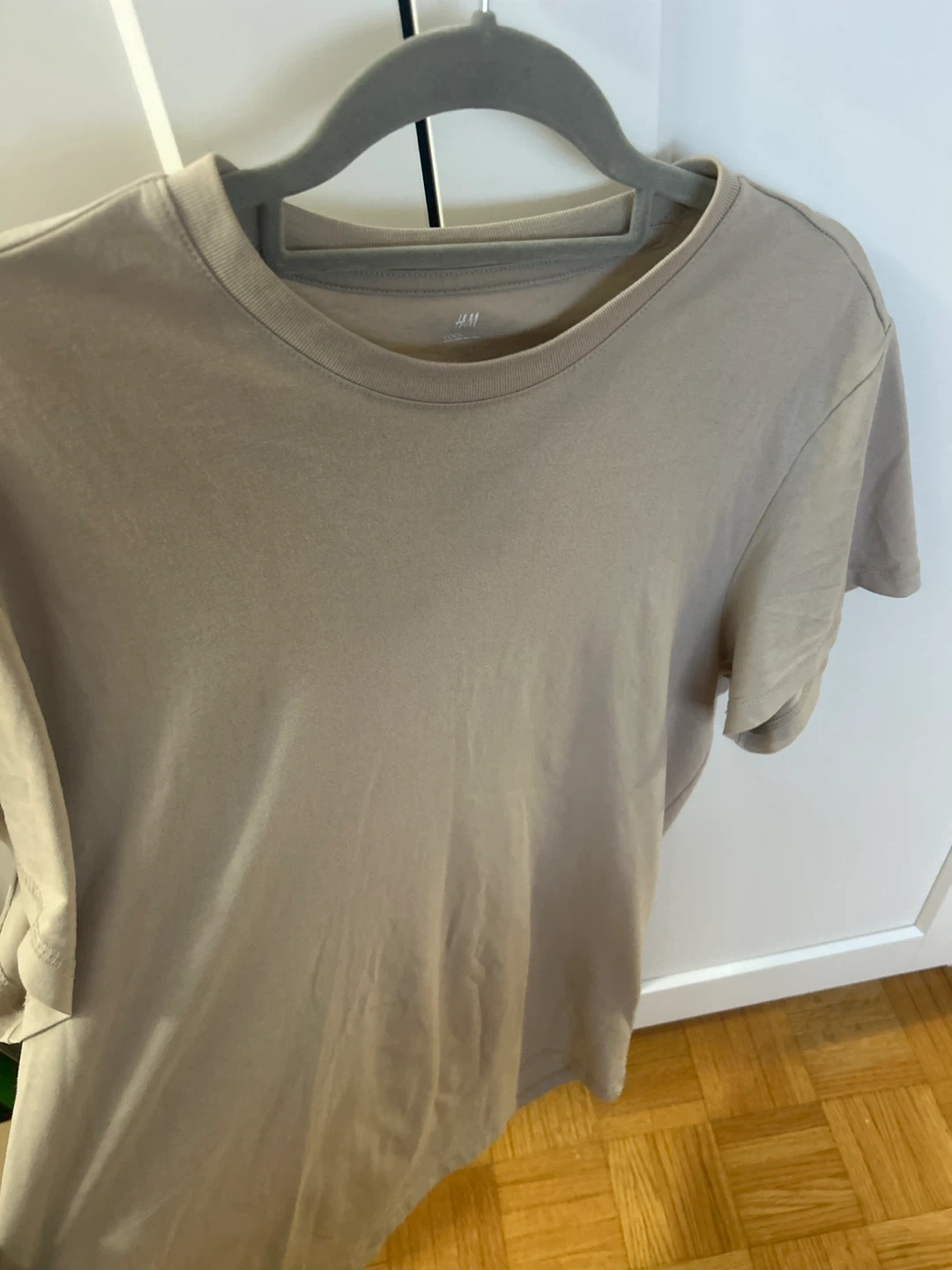 A beige H&M t-shirt with Coolmax technology. It's a regular fit in size M. The material is breathable and moisture-wicking, great for everyday wear or workouts!