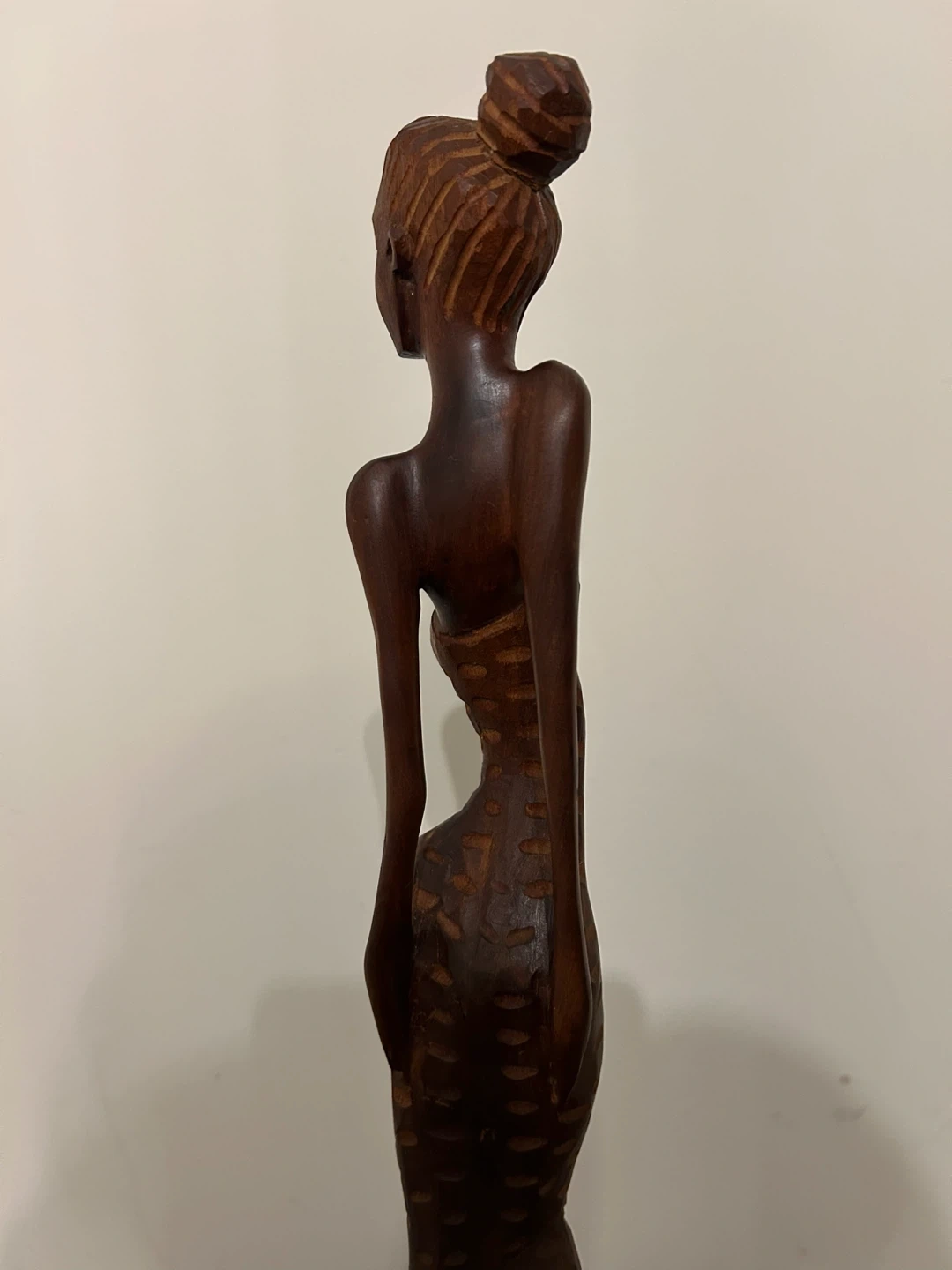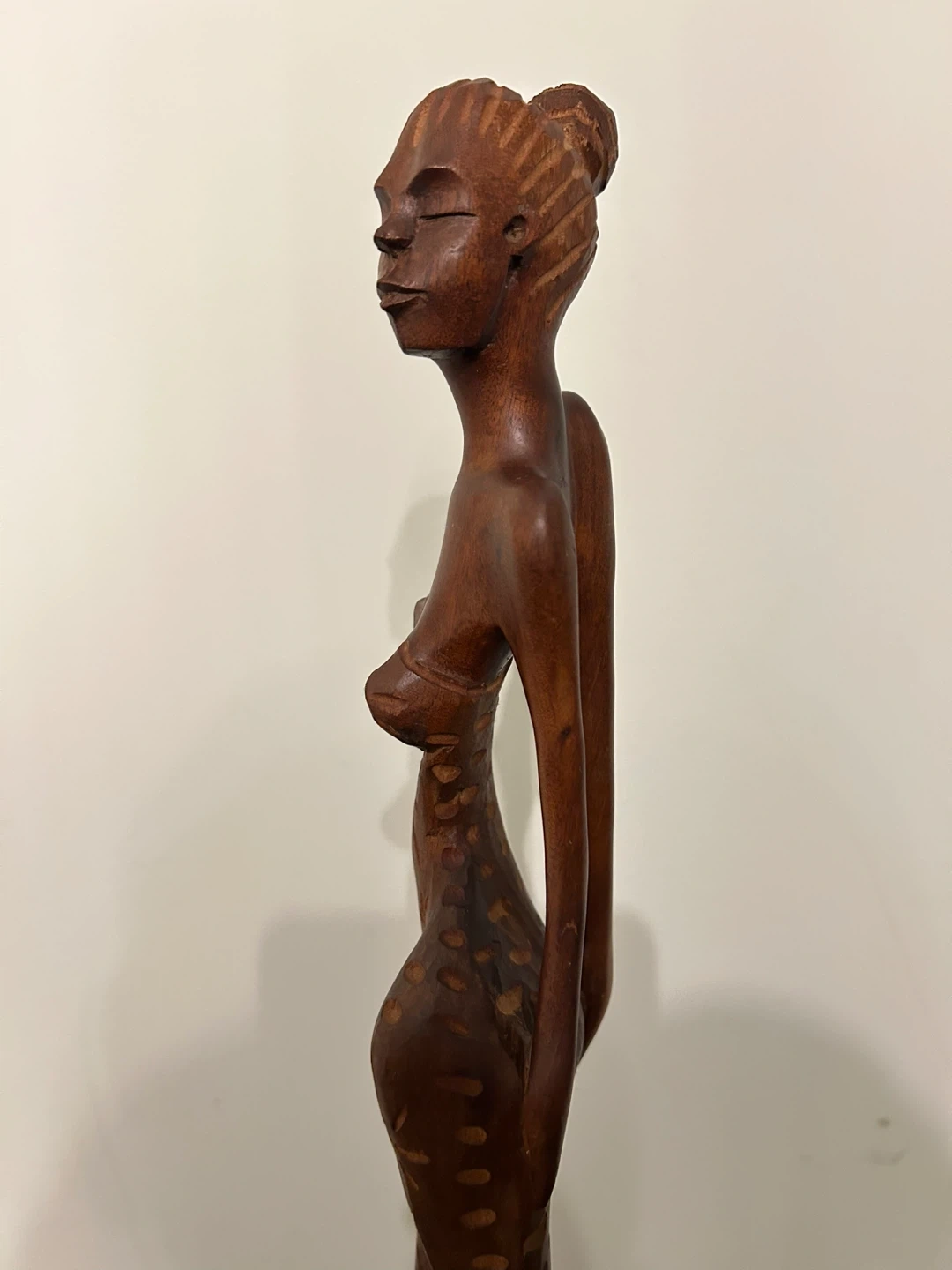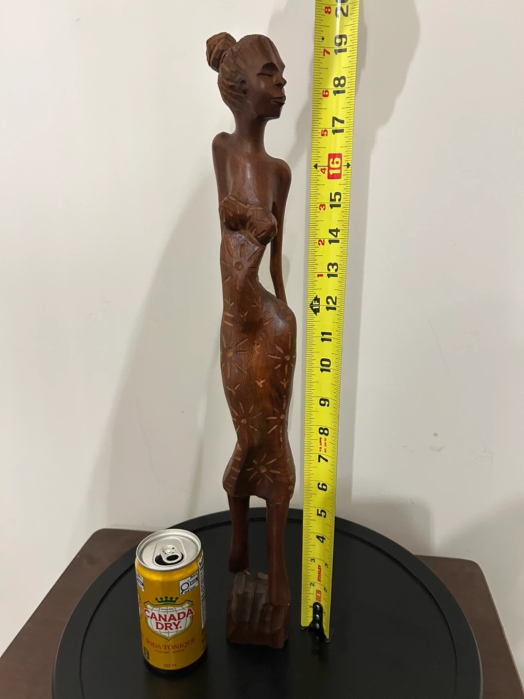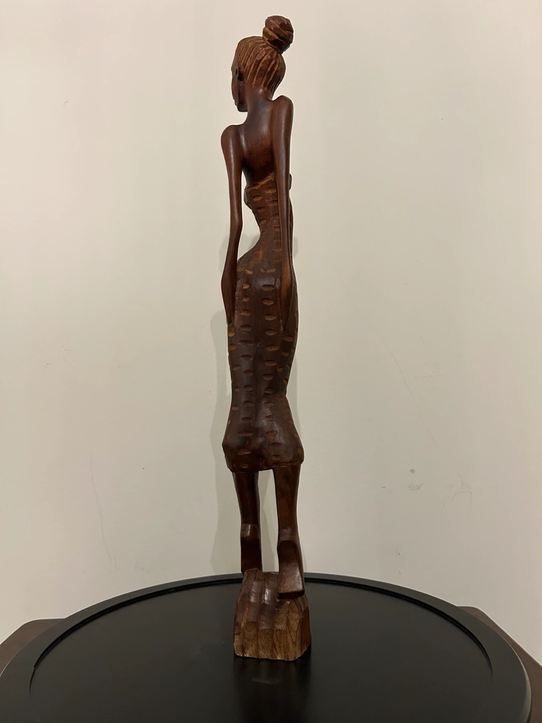 A striking piece of authentic Cuban folk art, this vintage hand-carved wooden sculpture features an elegant, elongated female figure with refined proportions and beautiful craftsmanship. Carved from solid dark wood, the statue has a rich natural tone and smooth polished finish that enhances its sculptural presence. The figure wears a stylized high-bun hairstyle and a flowing dress adorned with etched sun and floral motifs, adding depth, texture, and cultural character. The clean vertical form and decorative carving make it a wonderful statement piece for collectors of Caribbean art, Mid-Century inspired interiors, or globally curated spaces. Excellent vintage condition with light, natural age wear consistent with handmade wooden art. • Pick up: Seton area, Calgary. • Shipping: around Canada (Canada Post with tracking). • Payment: e-transfers and cash. • See also my other lots. Open to your questions and suggestions. If necessary, I provide additional photos. • These are not new things, so please look carefully at the photos and videos. Sizes are submitted on request and also using a tape measure in the photo. Measurements can be seen in the photos.